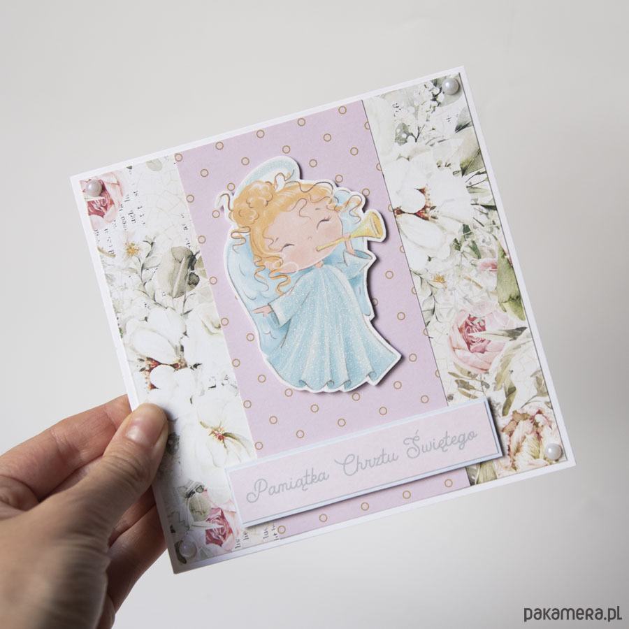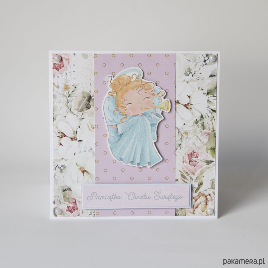 Ręcznie wykonana kartka z okazji Chrztu Świętego dziecka. Pojedynczy, niepowtarzalny egzemplarz.