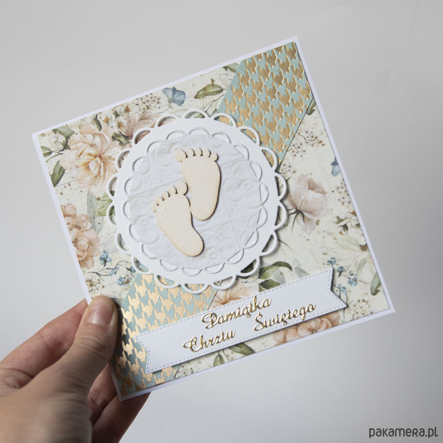 Ręcznie wykonana kartka z okazji Chrztu Świętego dziecka. Pojedynczy, niepowtarzalny egzemplarz.