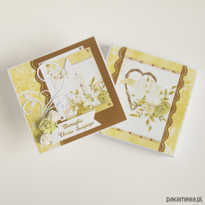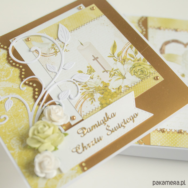 Ręcznie robiona pamiątka Chrztu świętego z przestrzenną dekoracją.