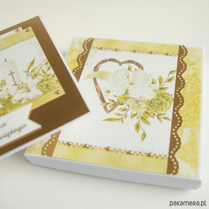 W komplecie dopasowane pudełeczko, które zmieści też drobny upominek lub pieniądze.
