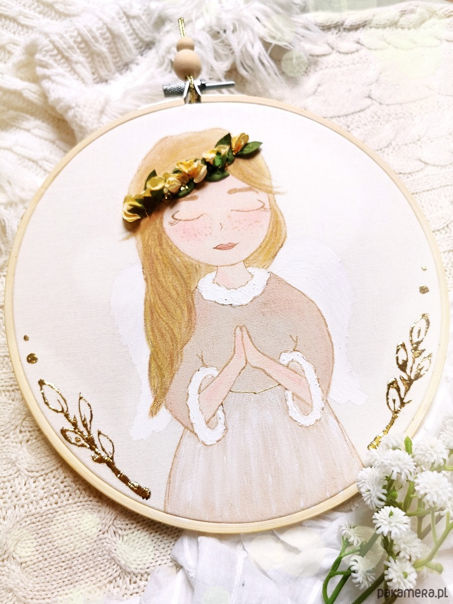 Obrazek z aniołem, pamiątka I Komunii Świętej dla dziewczynki