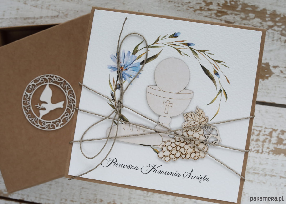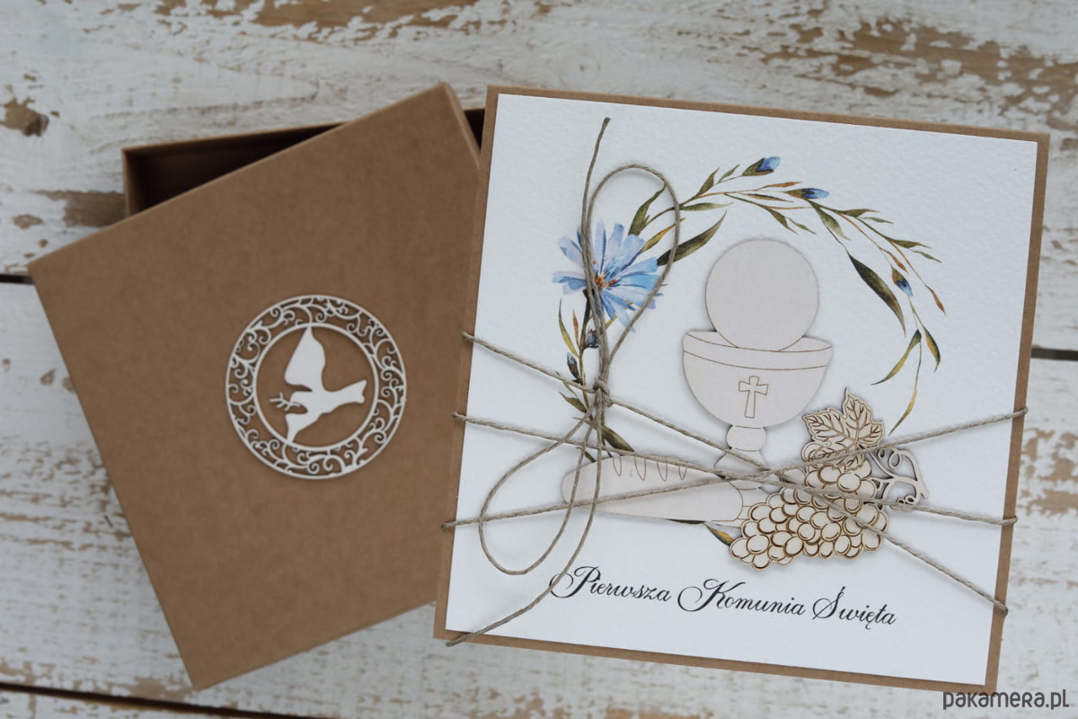 Kartka na komunię - pamiątka komunii ręcznie robiona Prezent w pudełku