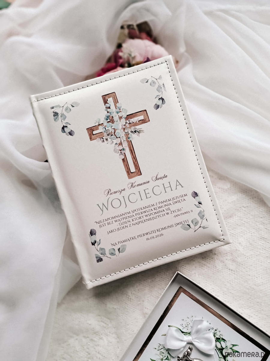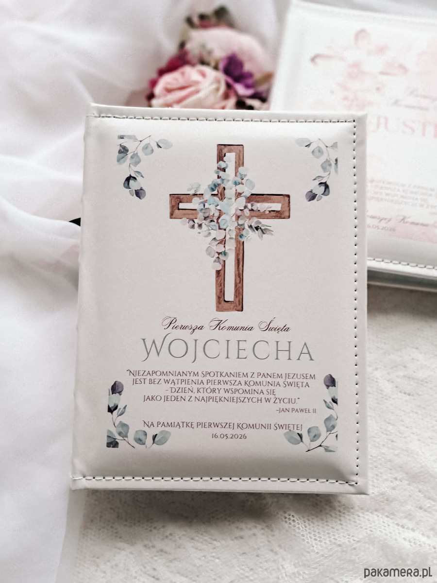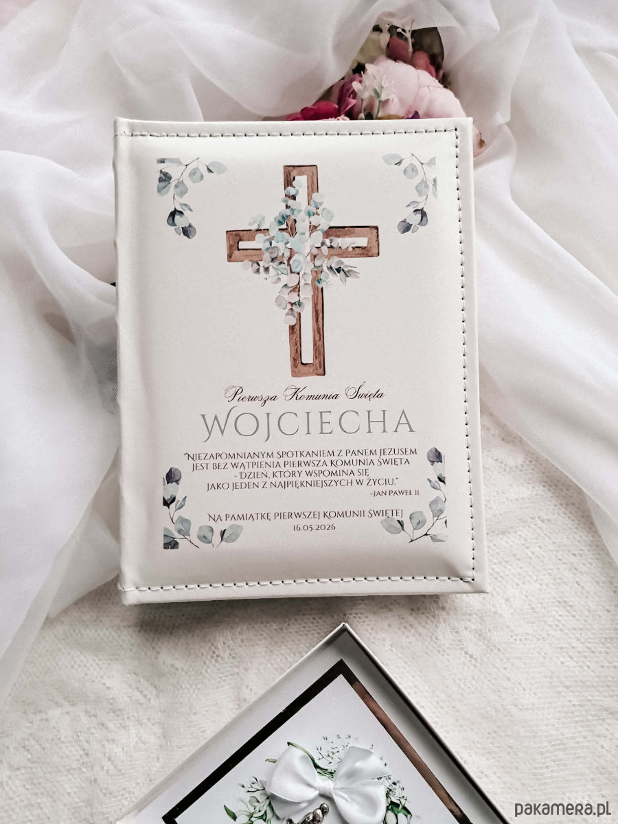 Pamiątka komunijna album Krzyż z dedykacją, prezent komunijny dla chłopca