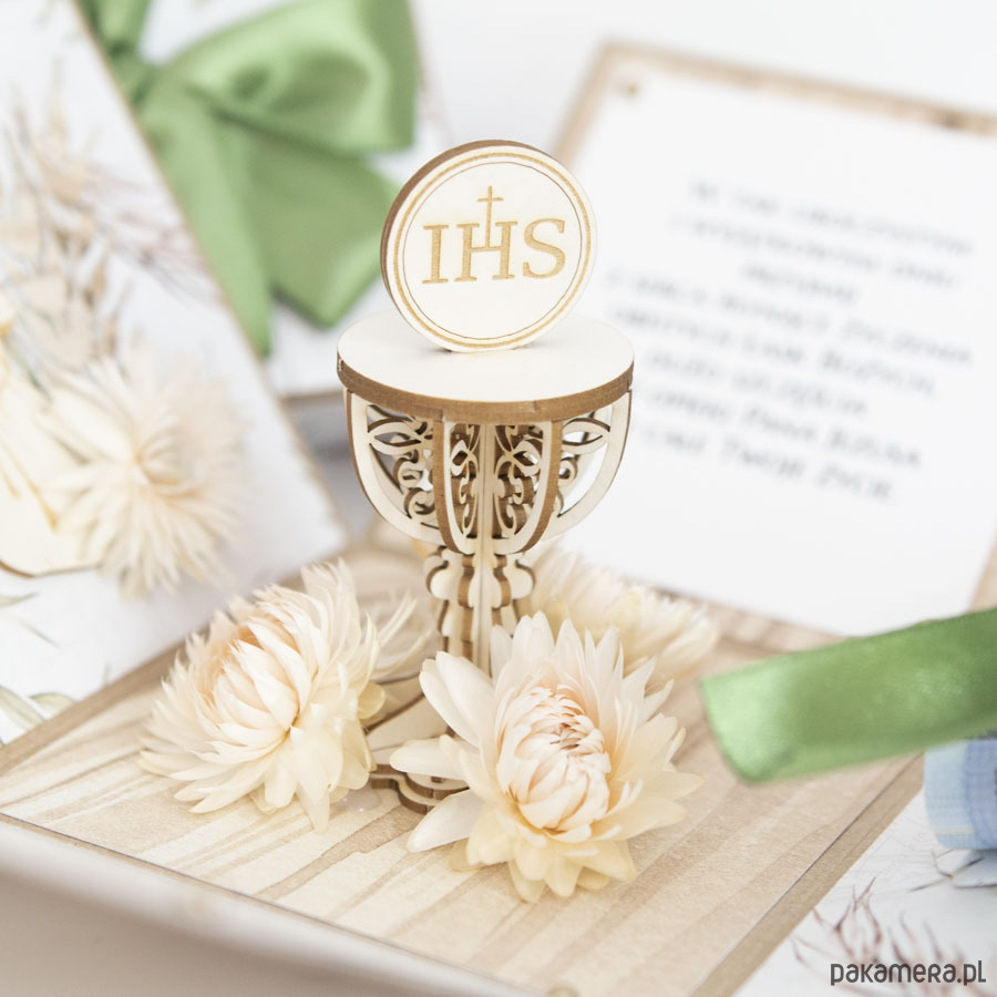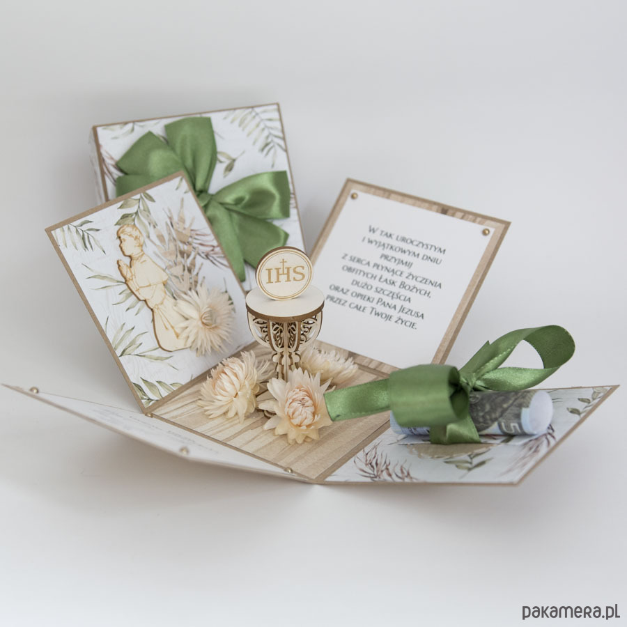 Pamiątka Pierwszej Komunii exploding box kartka 3d