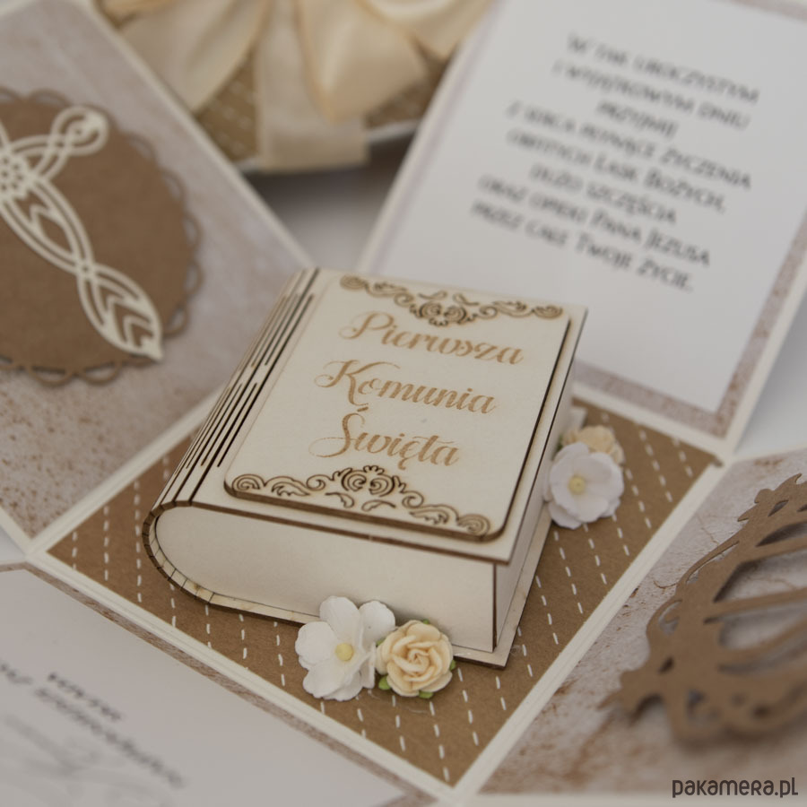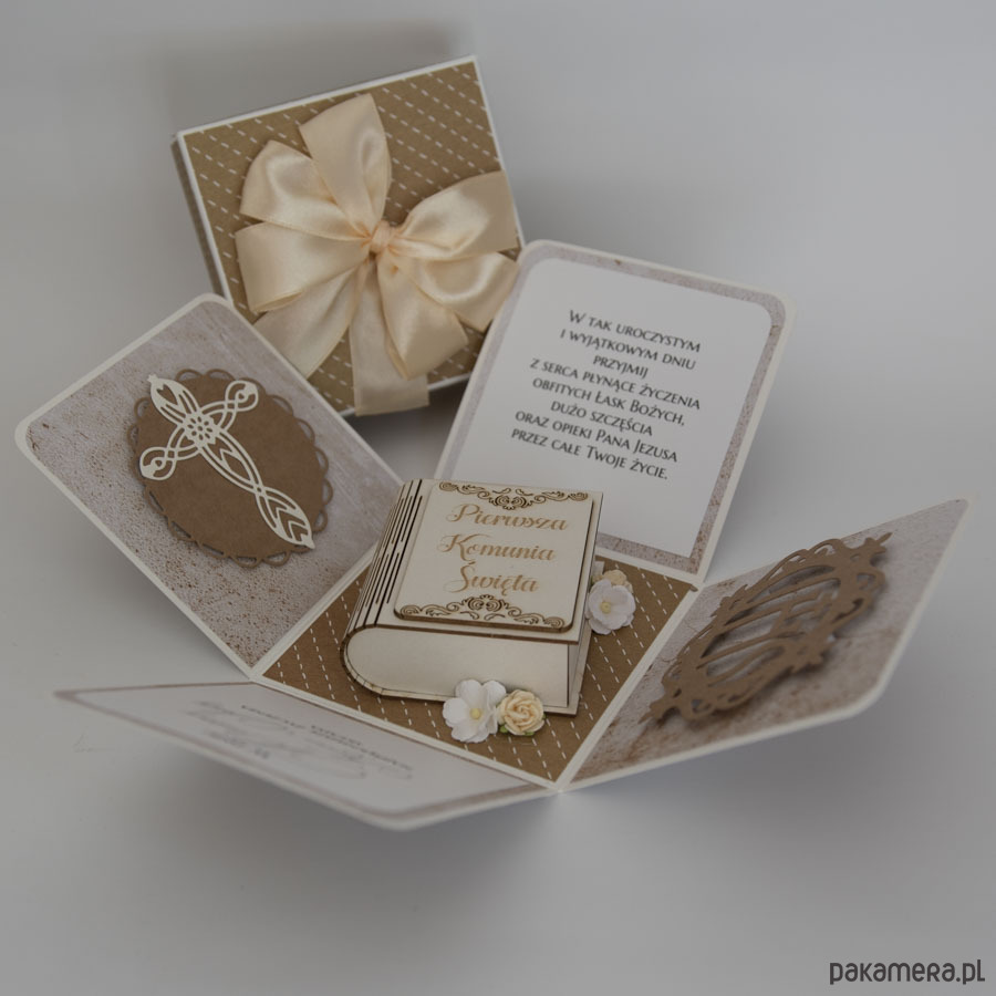 Pamiątka Pierwszej Komunii exploding box kartka 3d