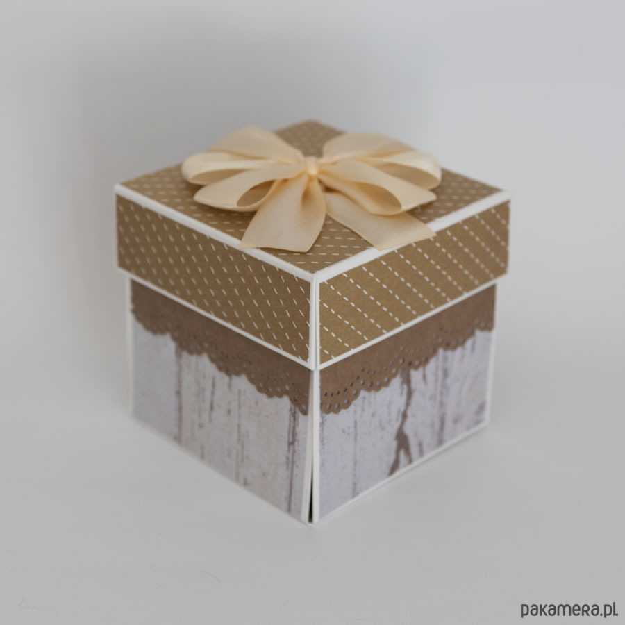 Wymiary złożonego pudełka to 10x10x10cm, po rozłożeniu kartka ma aż 30cm szerokości! Całość utrzymana jest w naturalnych, stonowanych barwach.