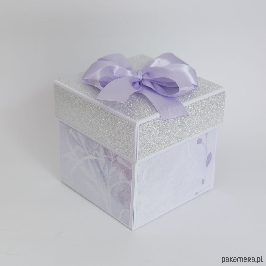 Ręcznie robiona kartka w kształcie rozkładanego, "ekspolodującego" po zdjęciu pokrywki pudełeczka.