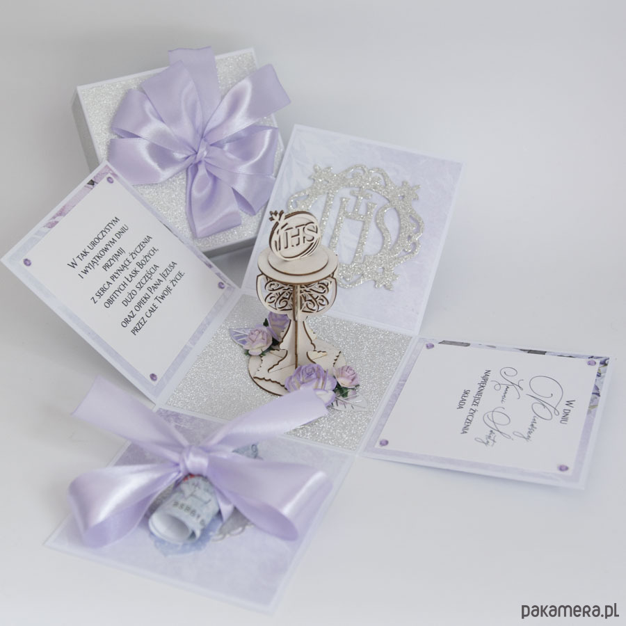 Pamiątka Pierwszej Komunii exploding box kartka 3d