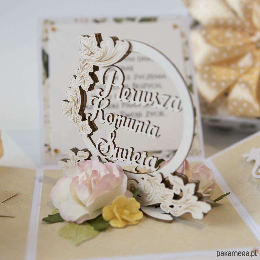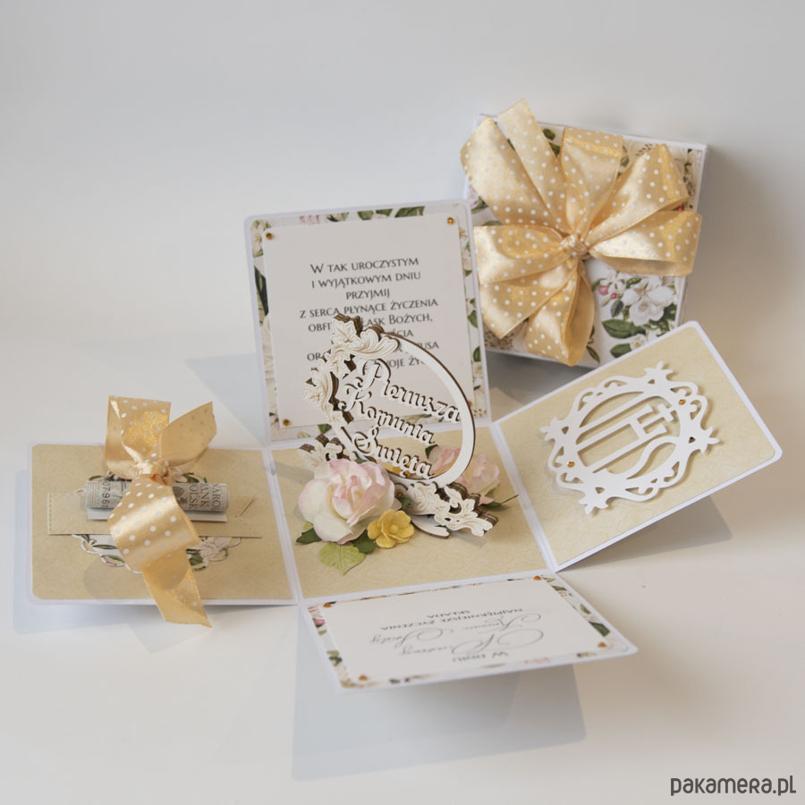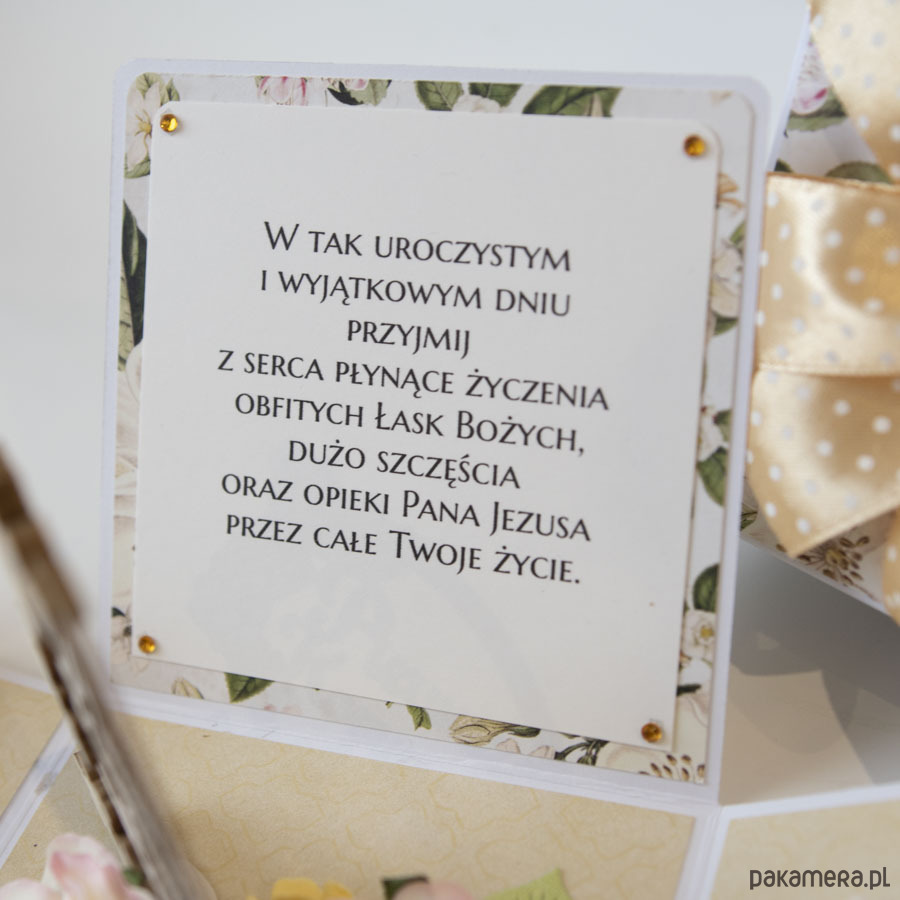 Pamiątka Pierwszej Komunii exploding box kartka 3d