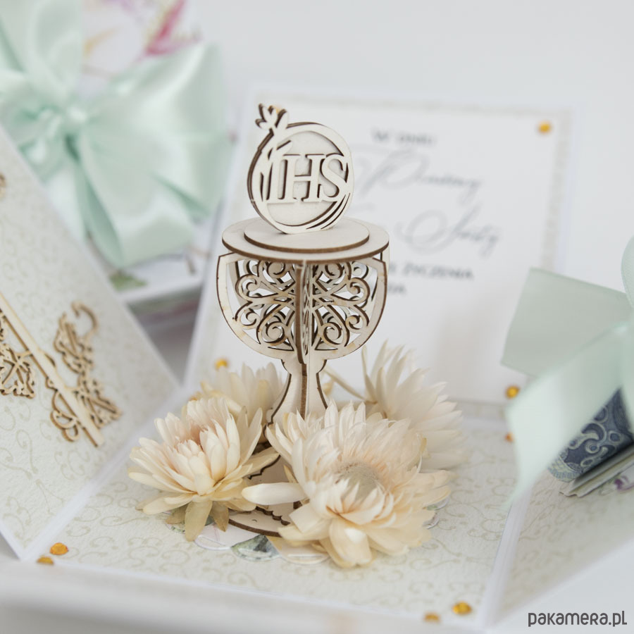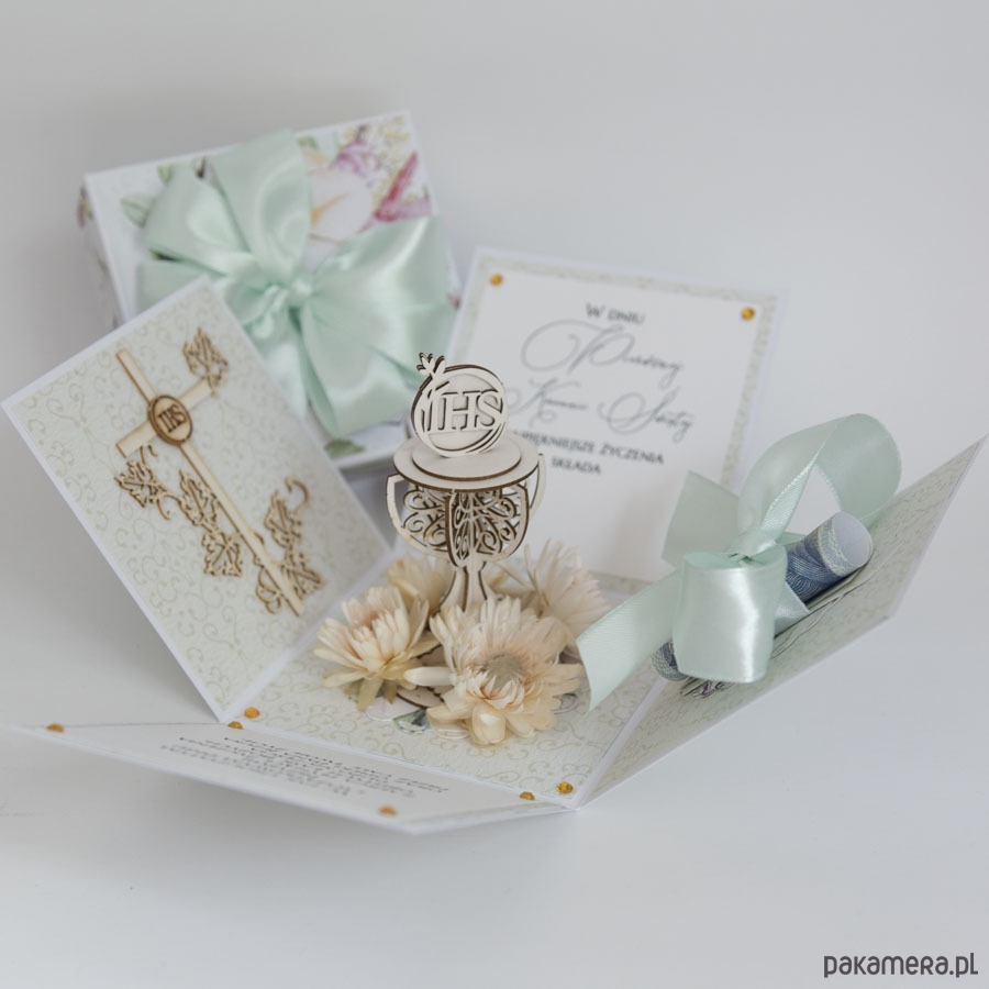 Pamiątka Pierwszej Komunii exploding box kartka 3d
