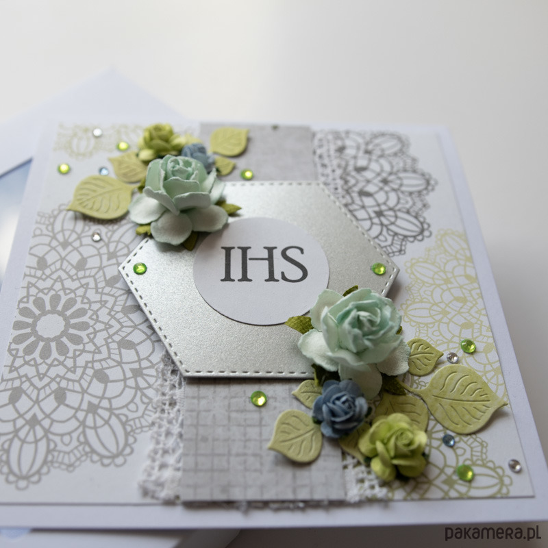Pamiątka składa się z kartki ozdobionej przestrzennymi dekoracjami i papierowymi kwiatami oraz pudełeczka z okienkiem. Do pudełeczka zmieści się jeszcze w razie potrzeby drobny prezent (banknoty, biżuteria, słodkości lub inny niewielki upominek). Na życzenie dołączę kopertkę na pieniądze.