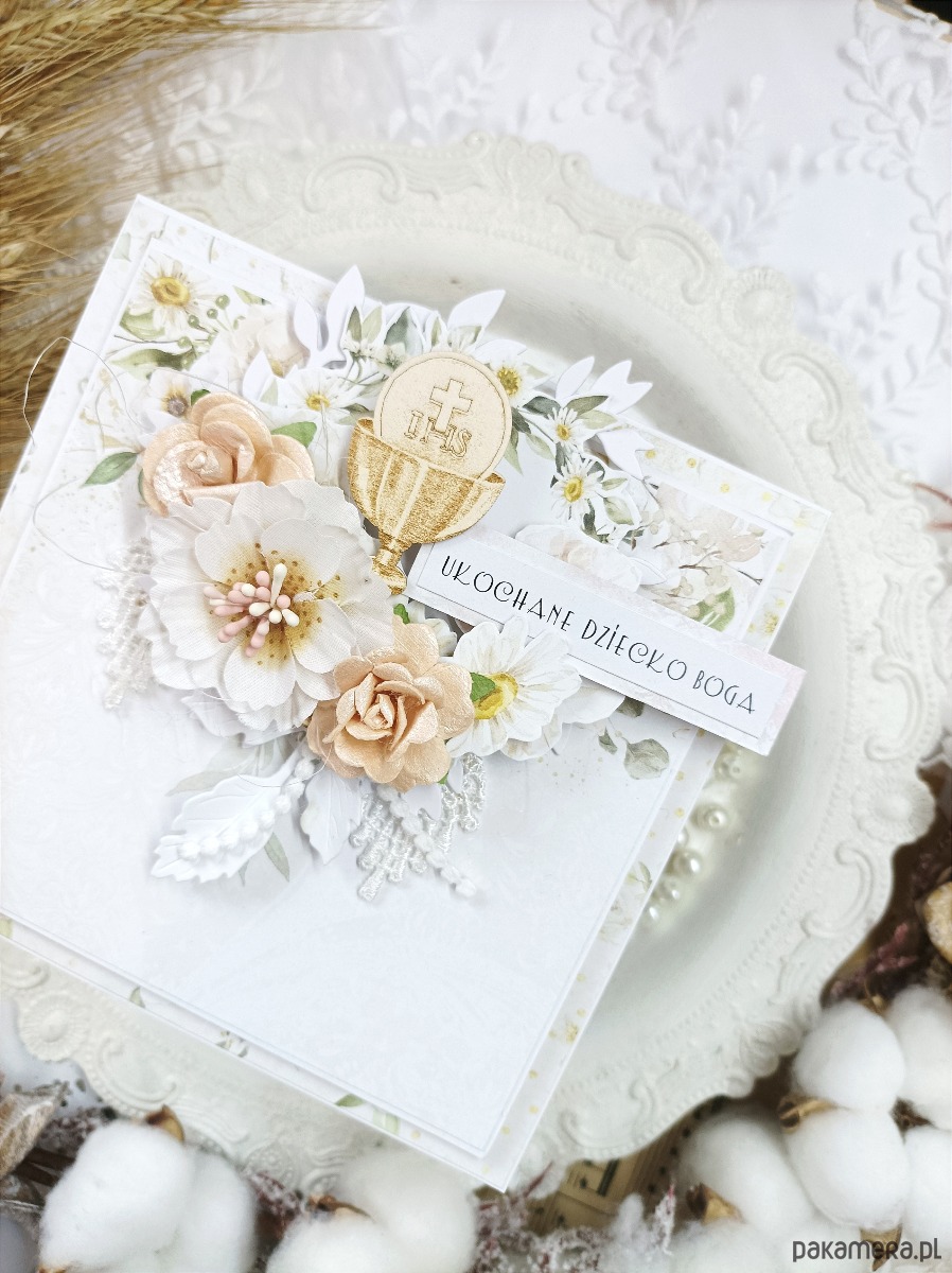 W środku kartki można wpisać życzenia, a do pudełeczka umieścić prezent w postaci pieniędzy, łańcuszka, lub innych malutkich drobiazgów.