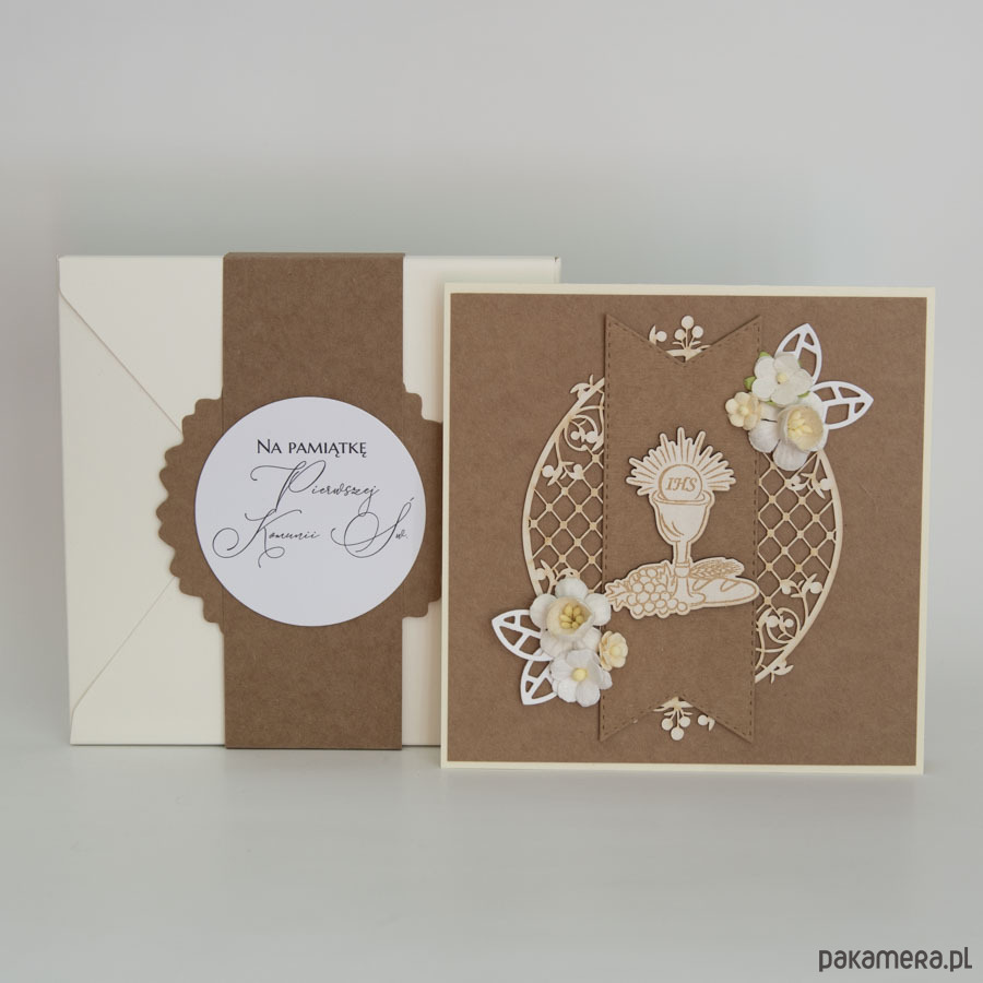 Ręcznie robiona kartka z okazji Pierwszej Komunii Świętej dziecka w komplecie z kopertą 3d.