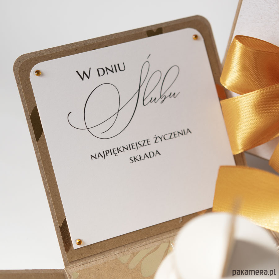 Ręcznie robiona kartka z okazji ślubu w formie rozkładanego pudełeczka.