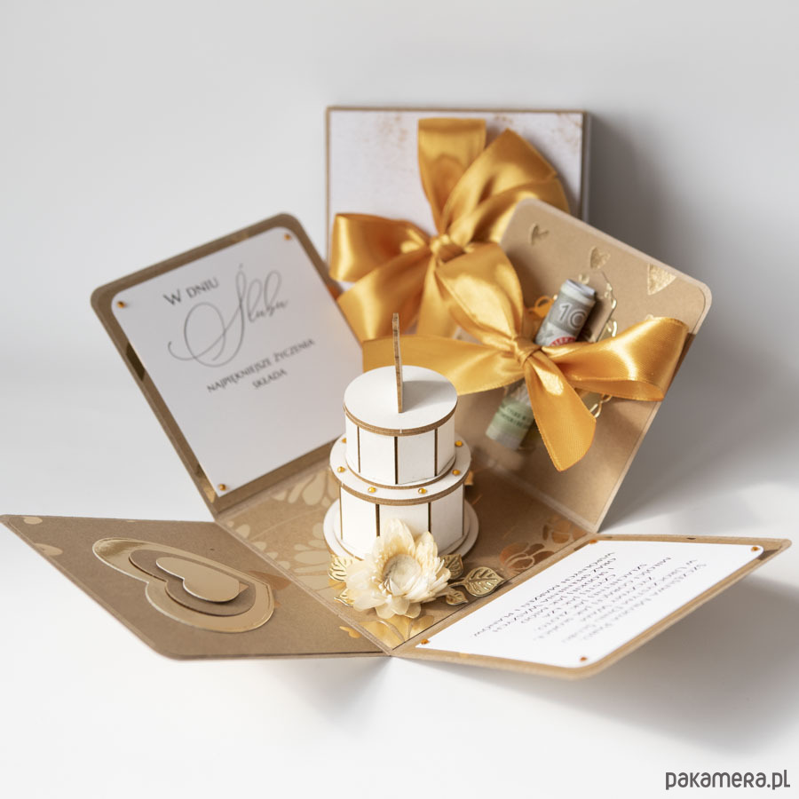 Pamiątka ślubu, exploding box, kartka 3d na wesele