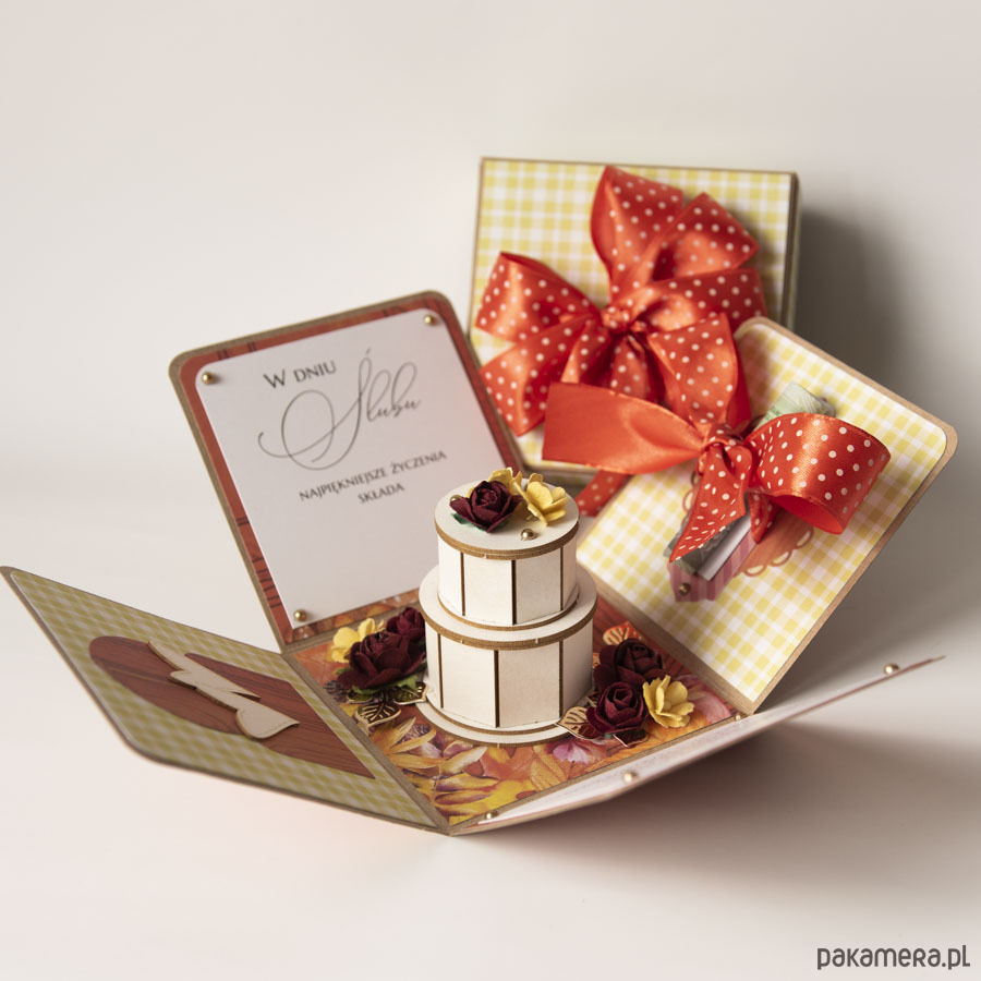Pamiątka ślubu, exploding box, kartka 3d na wesele