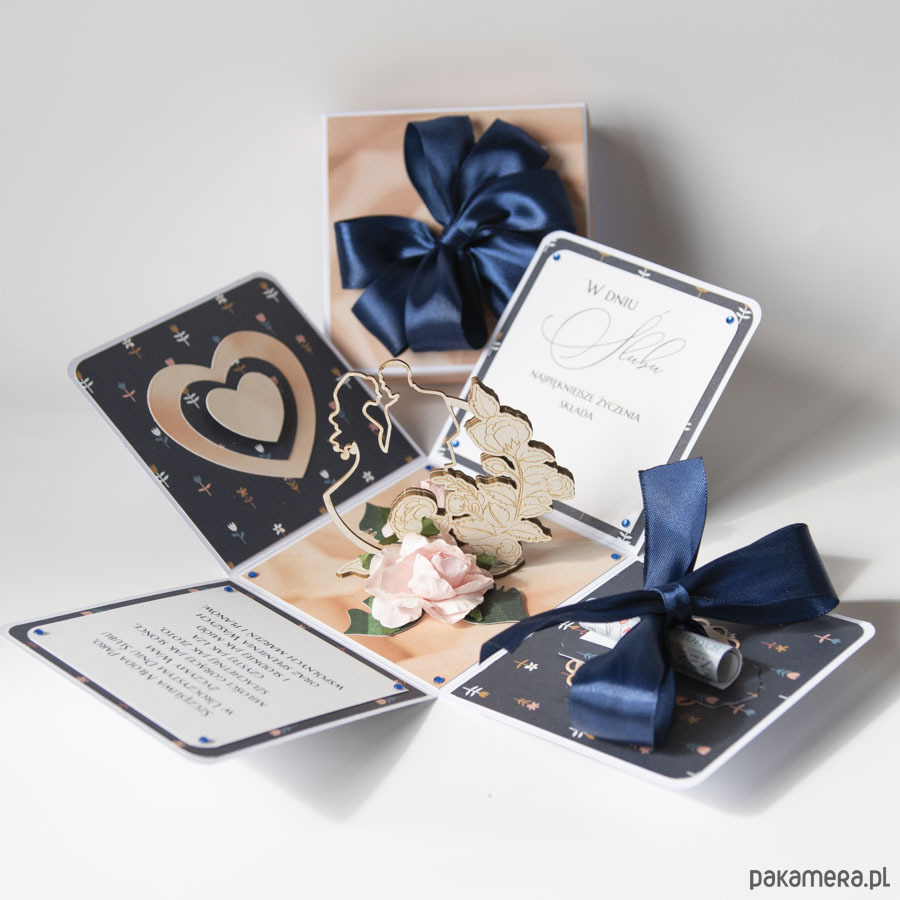 Pamiątka ślubu, exploding box, kartka 3d na wesele
