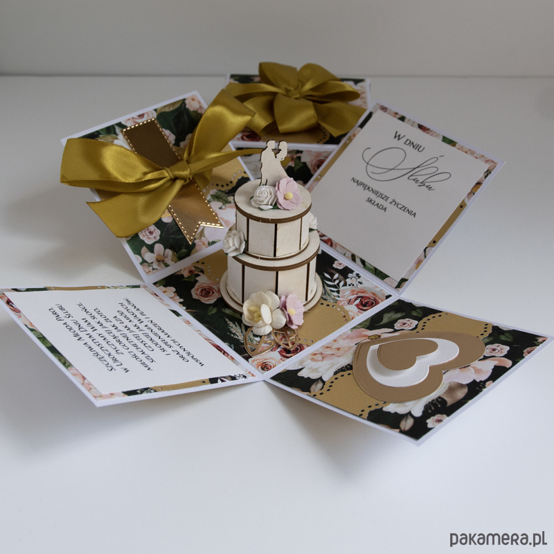 Ręcznie robiona kartka z okazji ślubu w formie rozkładanego pudełeczka.
