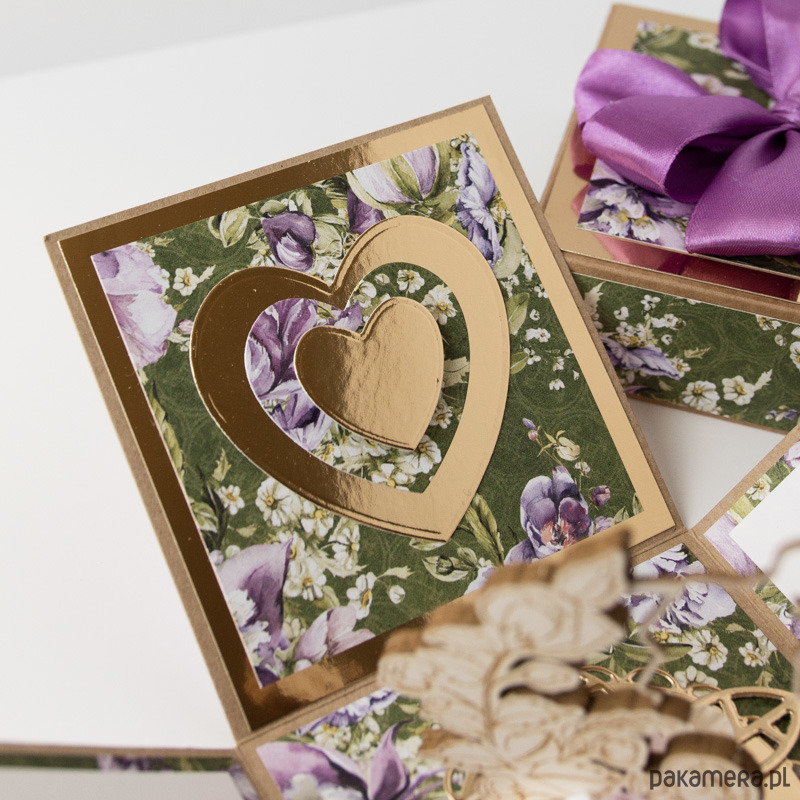 Ręcznie robiona kartka z okazji ślubu w formie rozkładanego pudełeczka.