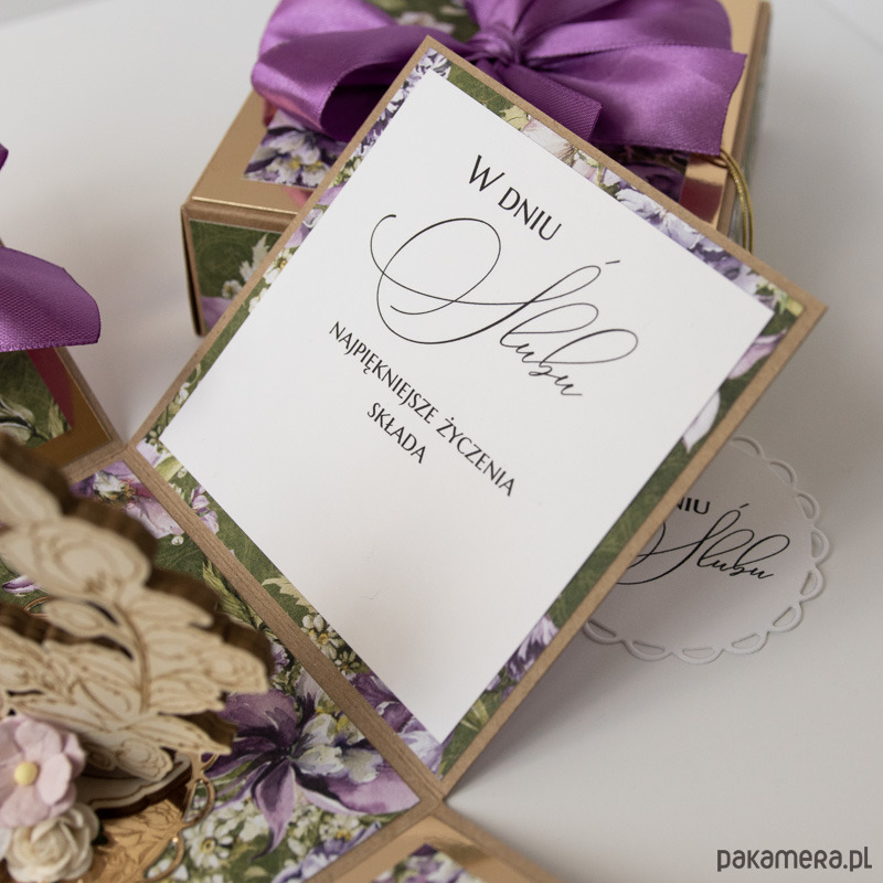 Ręcznie robiona kartka z okazji ślubu w formie rozkładanego pudełeczka.