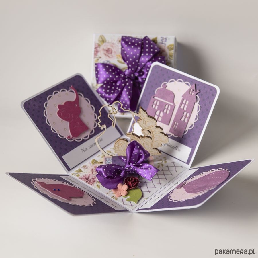 Ręcznie robiona kartka z okazji ślubu w formie rozkładanego pudełeczka.