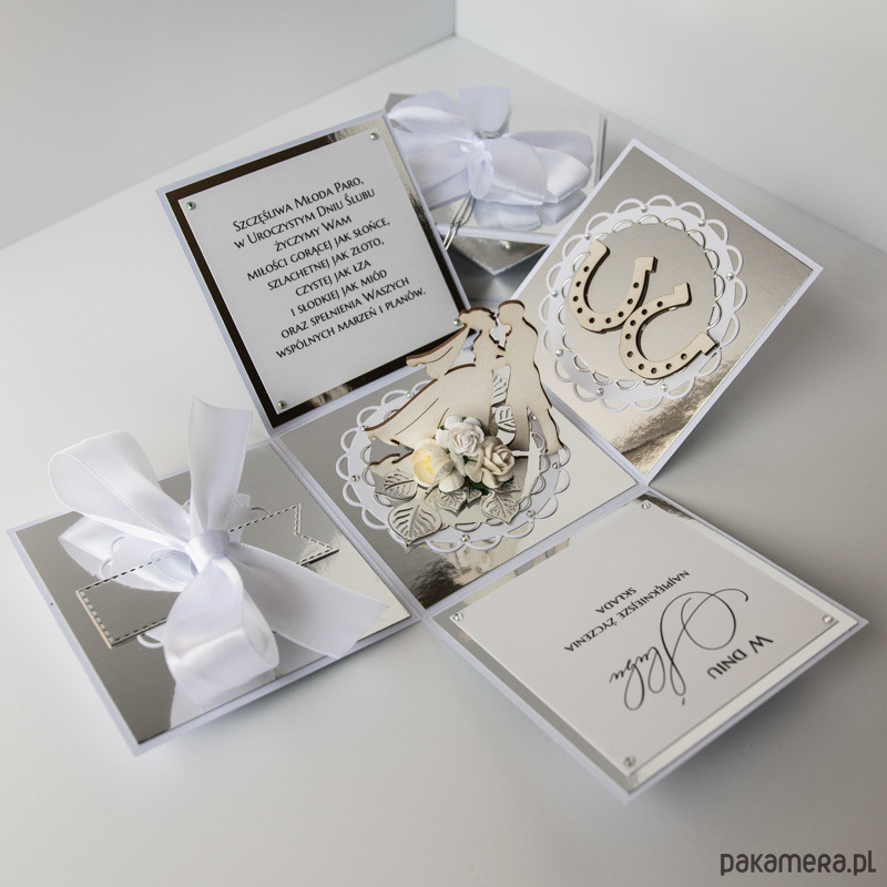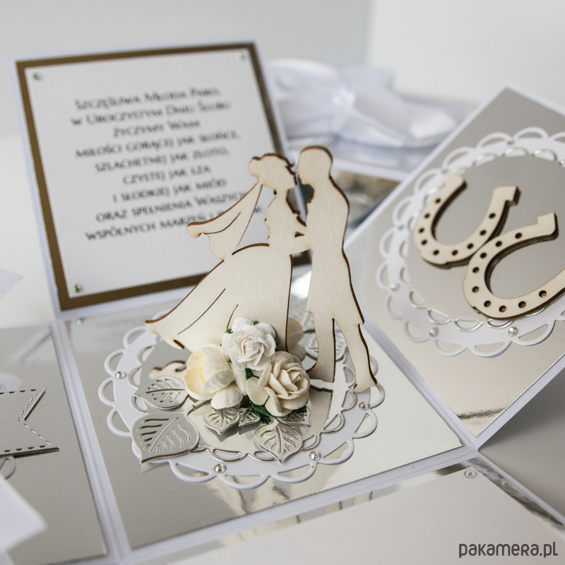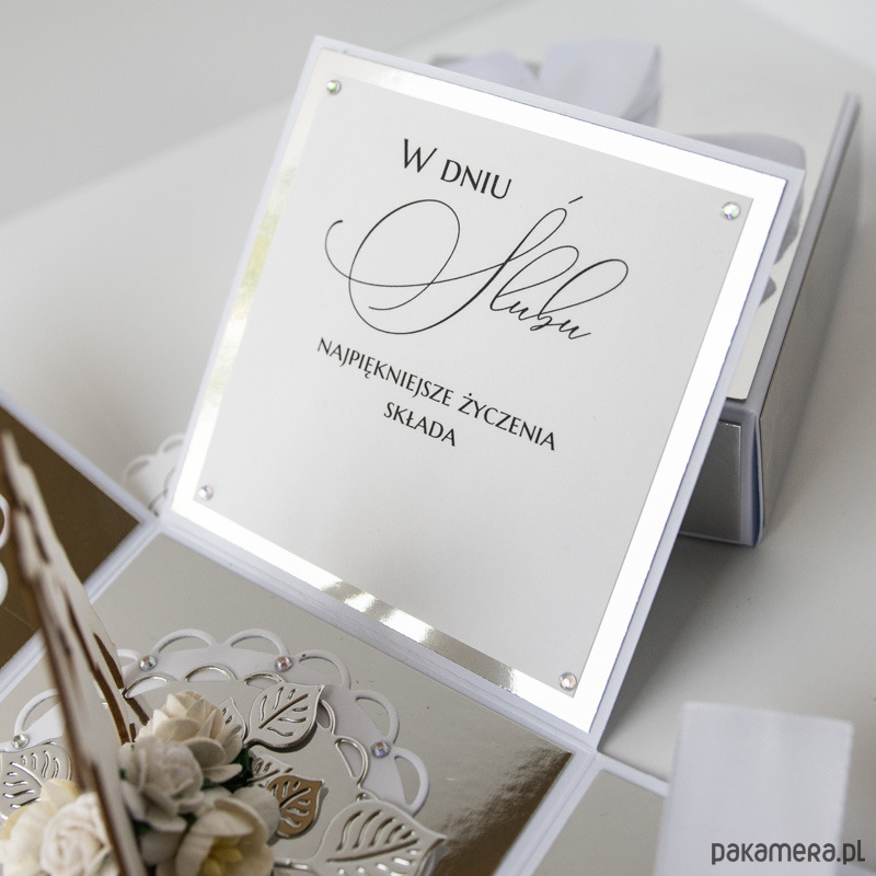Pamiątka ślubu, exploding box, kartka
