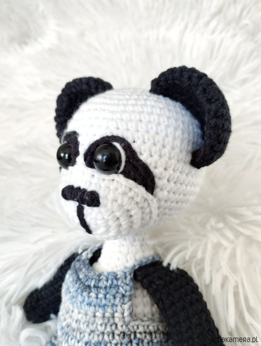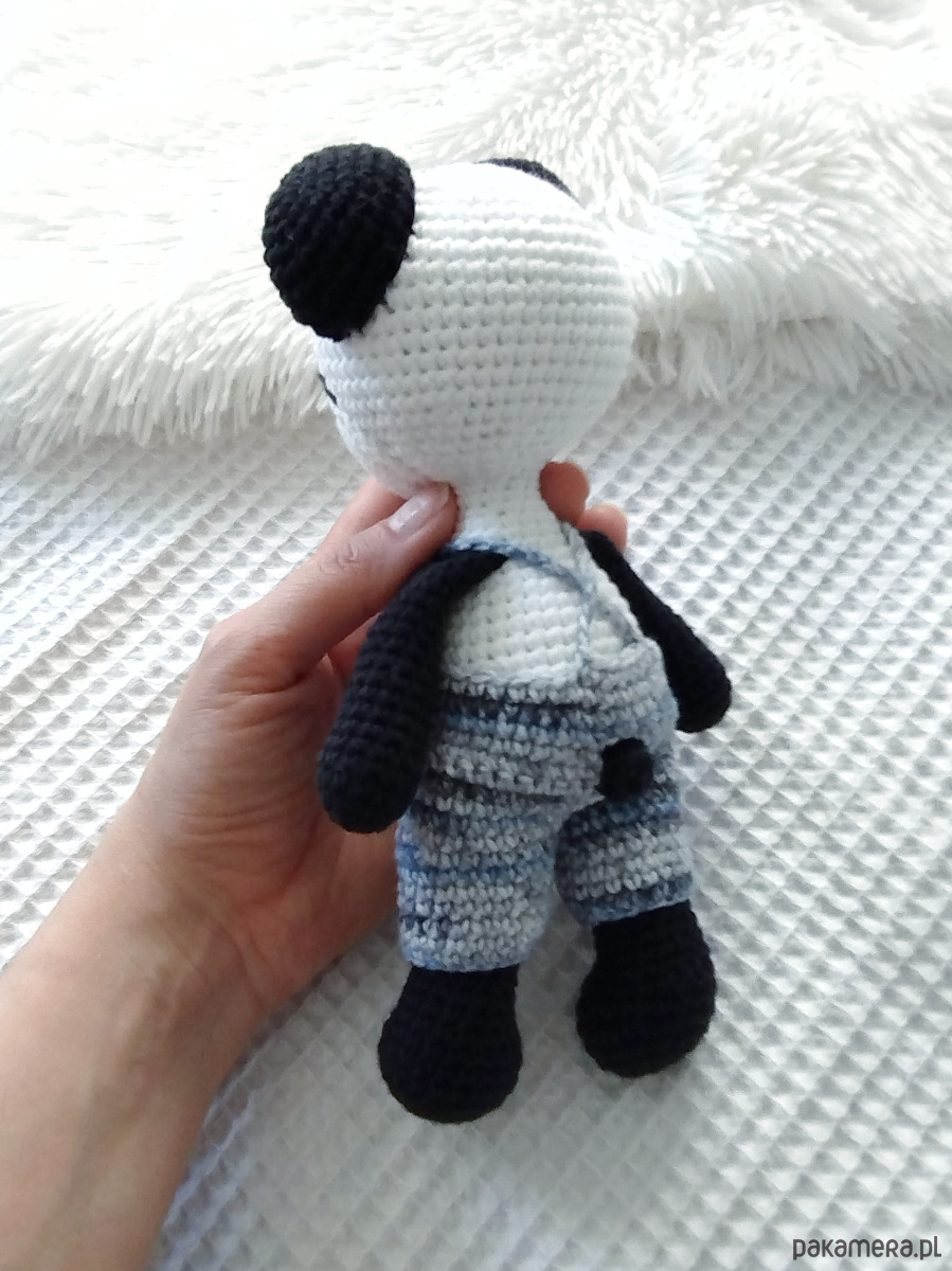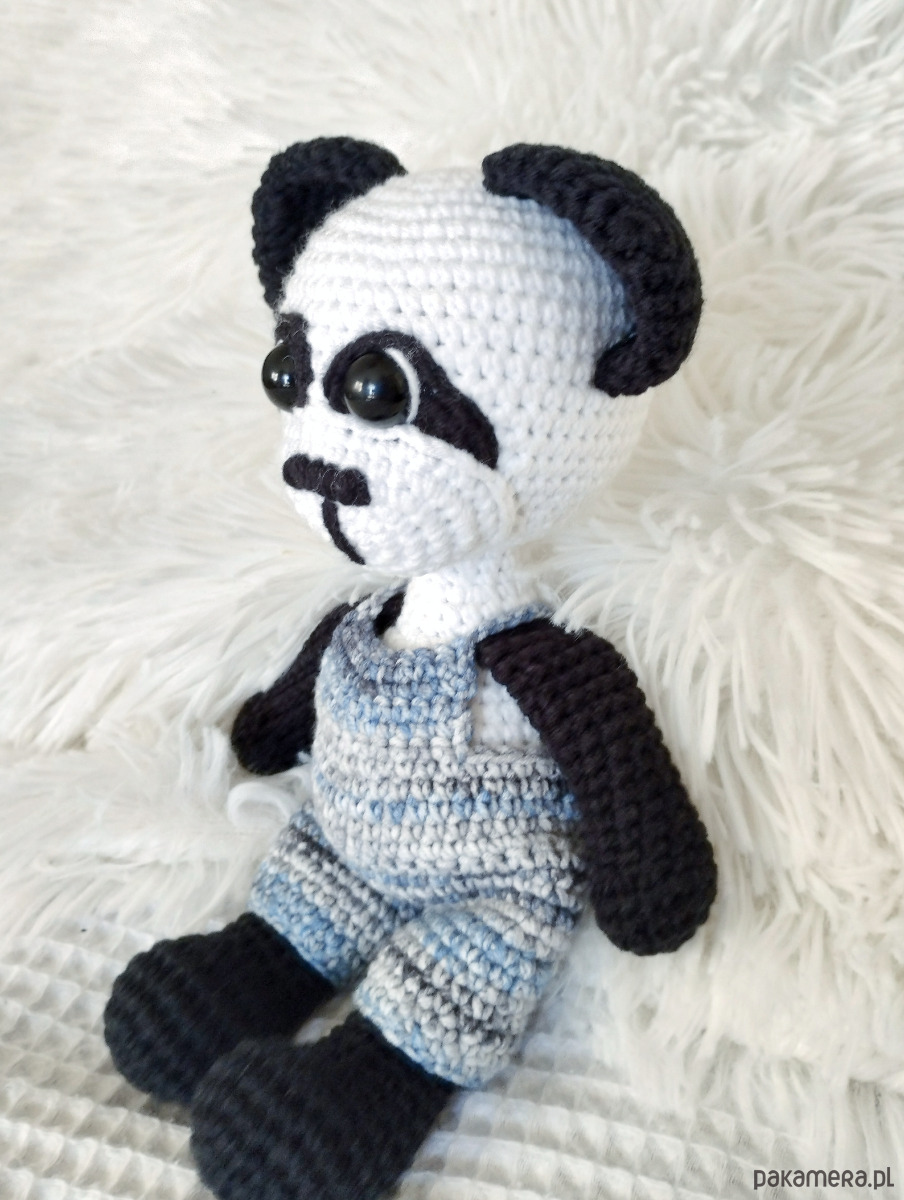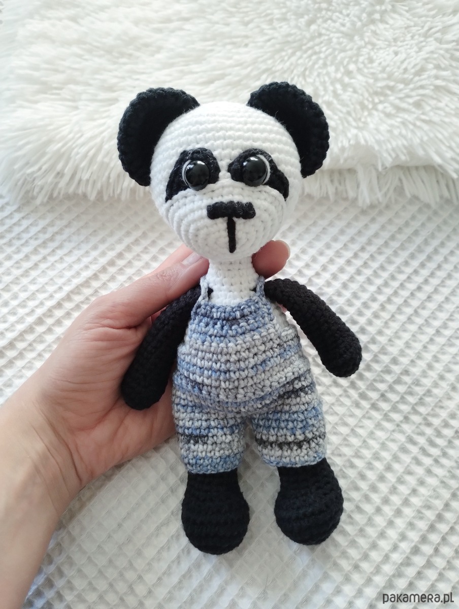 Szydełkowa panda w zdejmowanych spodniach to urocza zabawka dla każdego malucha.