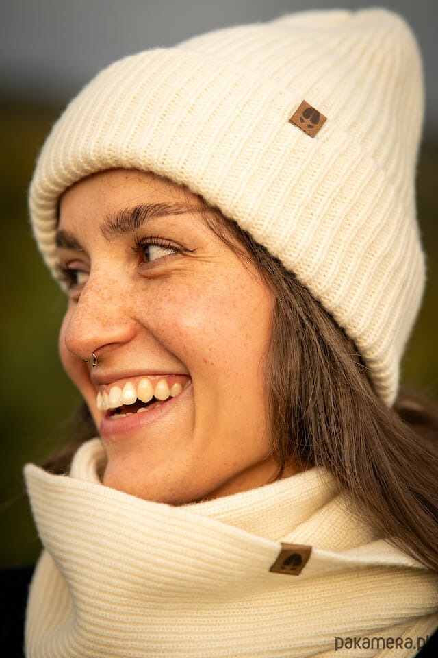 .PANDA. to godna następczyni .ŁANI. Ma wysoki ściągacz i doskonale chroni uszy przed wiatrem i chłodem. Przypadnie również od gustu tym, co szukają większej objętości i przędzy z dłuższym włosem (jest bardziej puchata niż nasze klasyczne zwierzaki np. .WILK., czy .ŁOŚ., ma jednak krótszy włos niż .SOWA.)