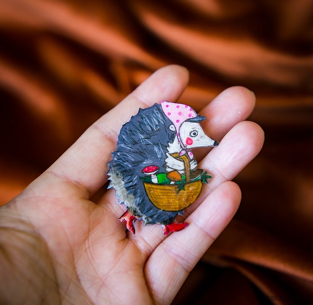Piękna broszka ręcznie rysowana, zabezpieczona lakierem ekologicznym.
