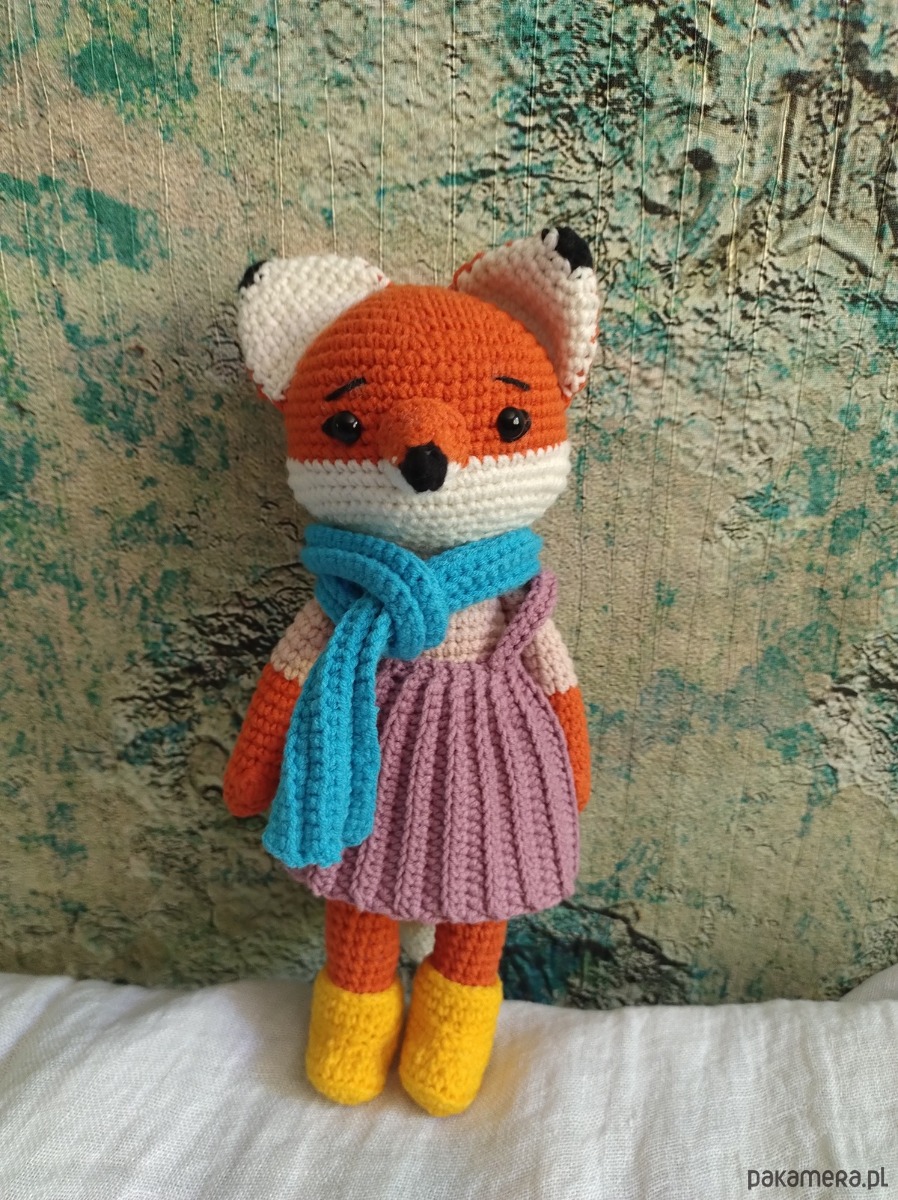 Panna lisiczka to idealny prezent dla młodej damy. Takiej, która lubi harce i swawole ale lubi też pić z filiżanki. Zawsze chętna do wspólnych wycieczek do lasu. Ma swój komplet ubranek, można uszyć jej nowe albo zamówić w Pompon Design:)