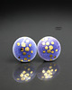 Ceramiczne okrągłe kolczyki, ręcznie wykonane z delikatnej porcelany, jednostronnie szkliwione fioletowym błyszczącym szkliwem, dekorowane kalką ceramiczną z dodatkiem złota,na antyalergicznych sztyftach w kolorze srebrnym. Średnica ok. 9mm. Polecam