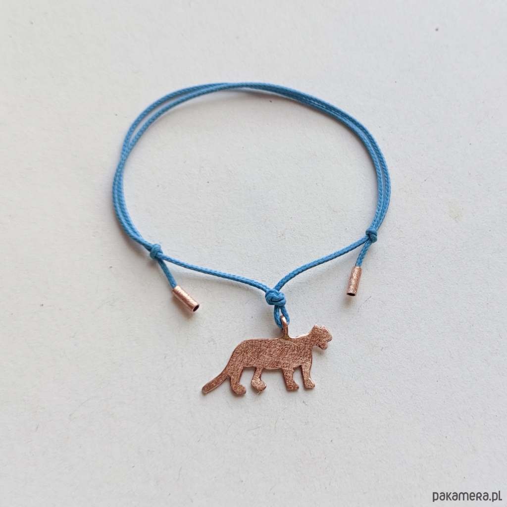 PANTERKA - to ponadczasowy i uniwersalny wzór. Połączenie metalu w odcieniu ciepłym z klasycznym zwierzęcym motywem, niesamowicie podkreśla efektowny wygląd biżuterii. Bransoletka wykonana jest z : miedź, ozdobny sznurek Szerokość zawieszki : 2,5 cm, długość zawieszki:1,7 cm.