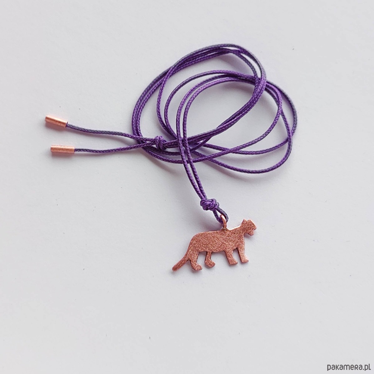 PANTERKA - to ponadczasowy i uniwersalny wzór. Połączenie metalu w odcieniu ciepłym z klasycznym zwierzęcym motywem, niesamowicie podkreśla efektowny wygląd biżuterii. Wisiorek wykonany jest z : miedź,ozdobny sznurek Szerokość zawieszki : 2,5 cm, długość zawieszki:1,7 cm.