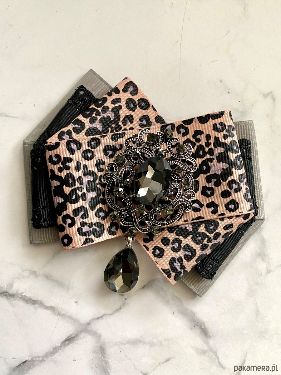 Panterkowa Brosza z szarą kryształową ozdobą NEW