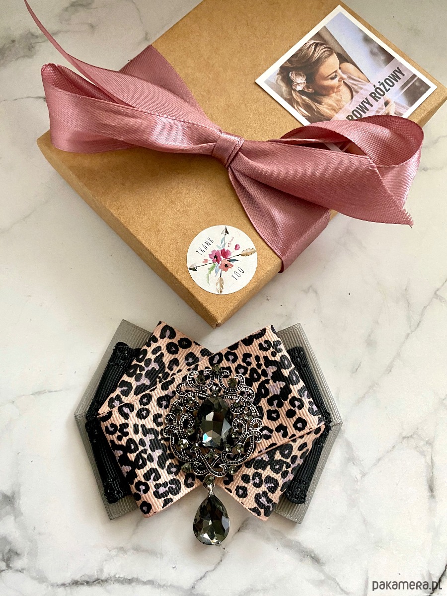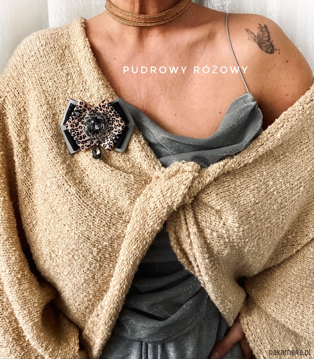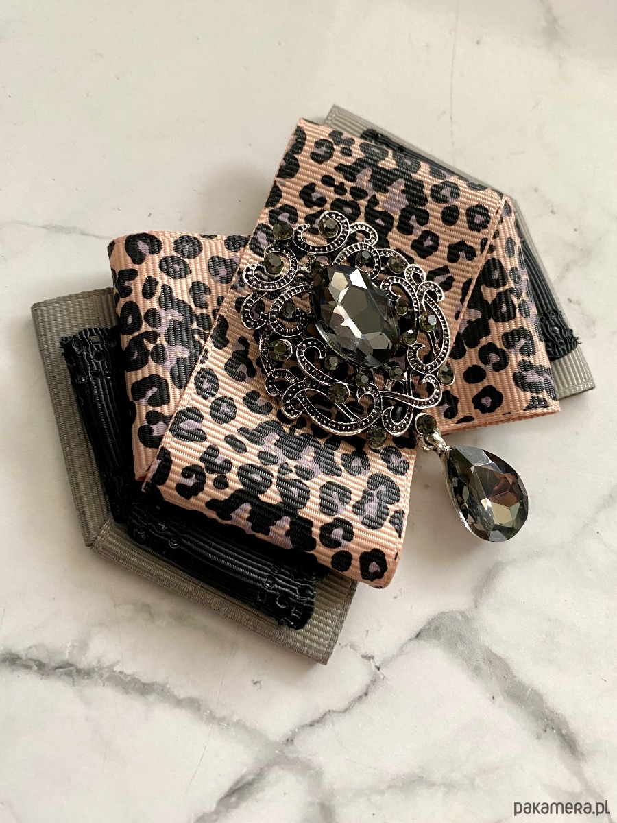 Broszka wykonana z wysokiej jakości taśm i dodatków.