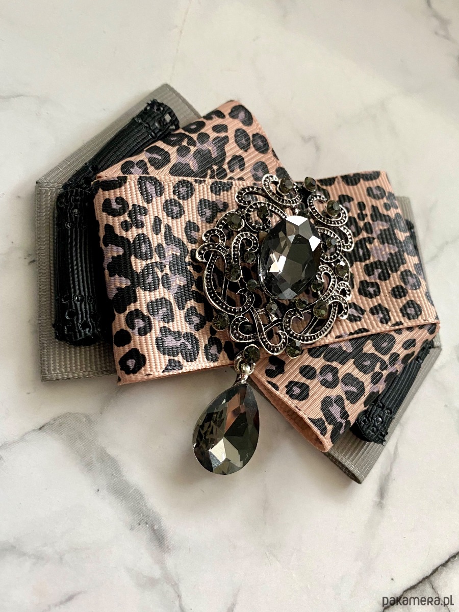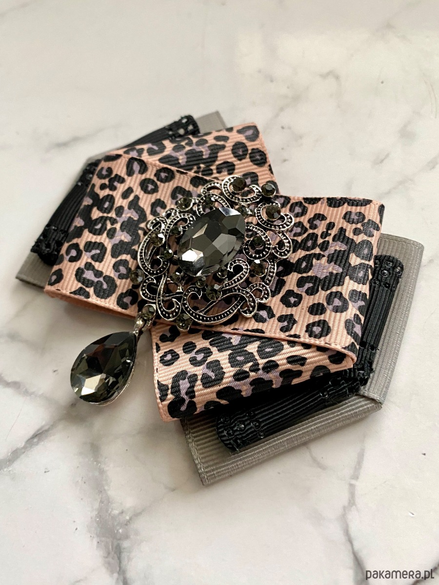 Panterkowa Brosza z szarą kryształową ozdobą NEW