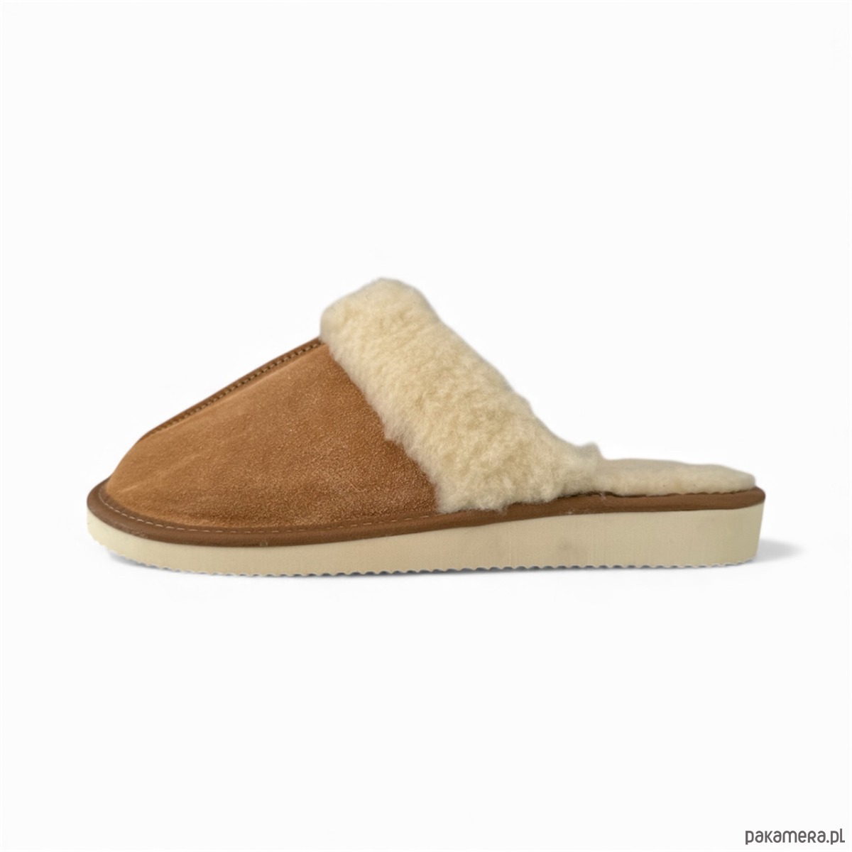 Pantofle damskie z wełną i z naturalnego zamszu jasnobrązowe