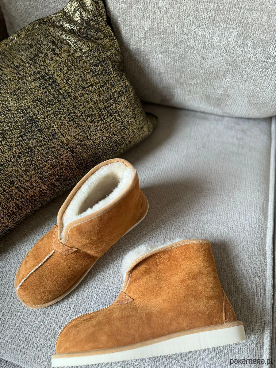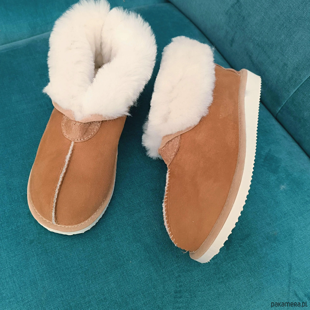 Nasze pantofle z naturalnej skóry owczej oraz wełny jasnobrązowe wykonane są ręcznie z niezwykłą starannością. Są miękkie i wygodne, a przy tym zachwycają niepowtarzalnym kolorem. Ich antypoślizgowa podeszwa dodatkowo chroni nasze stopy. Wewnątrz wyścielone są naturalną wełną z futra baraniego. Jest ona miękka, i delikatna, nie gryzie.