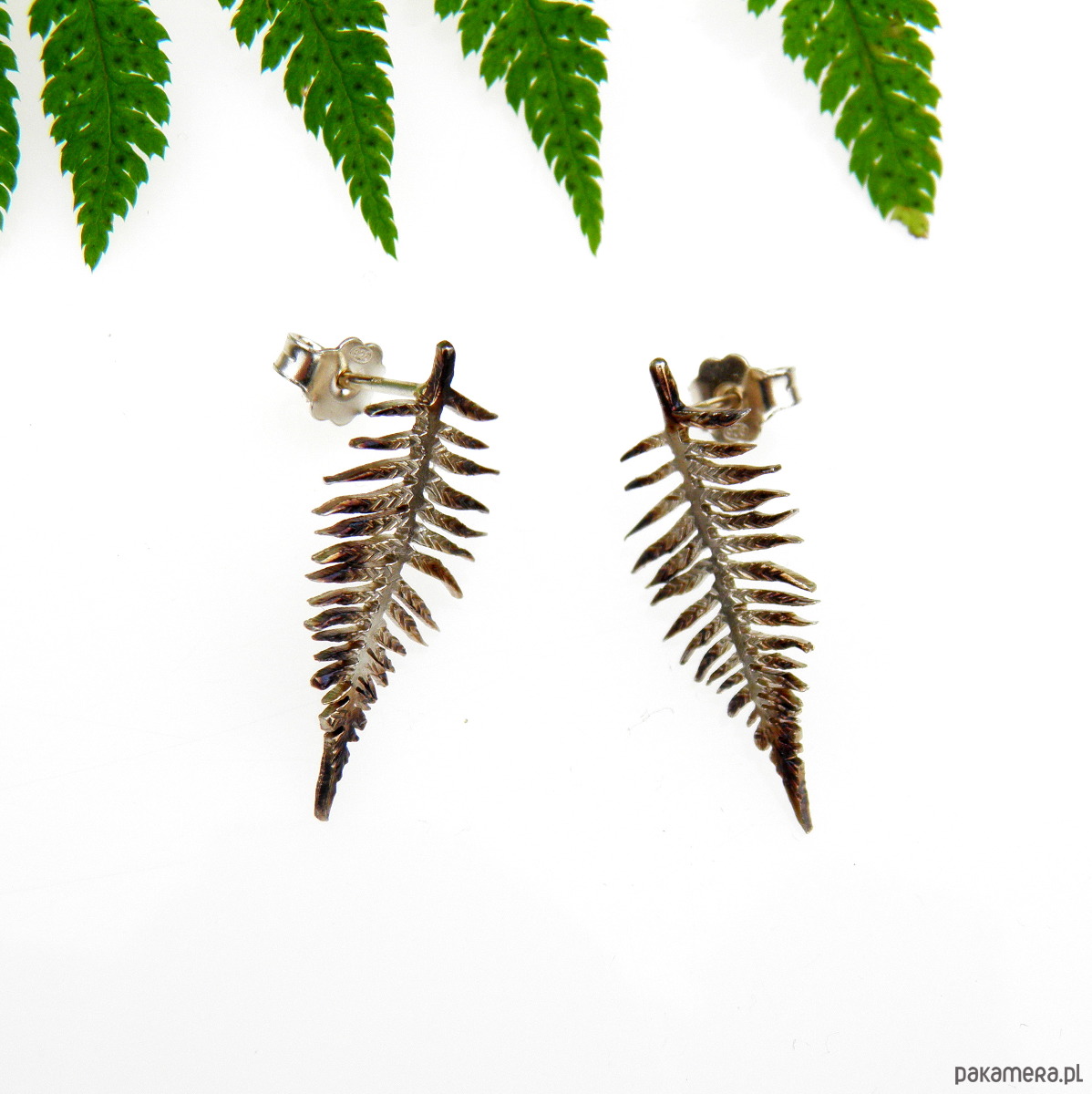 Kolczyki srebrne inspirowane liśćmi paproci.