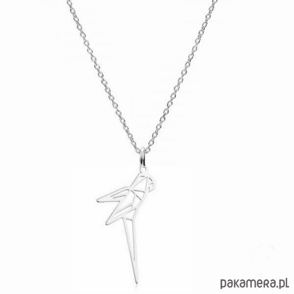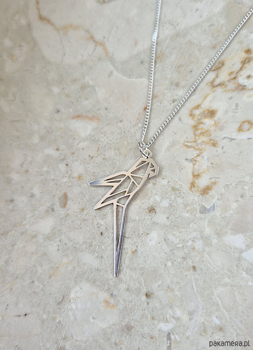 Naszyjnik z geometryczną zawieszką w kształcie papugi.