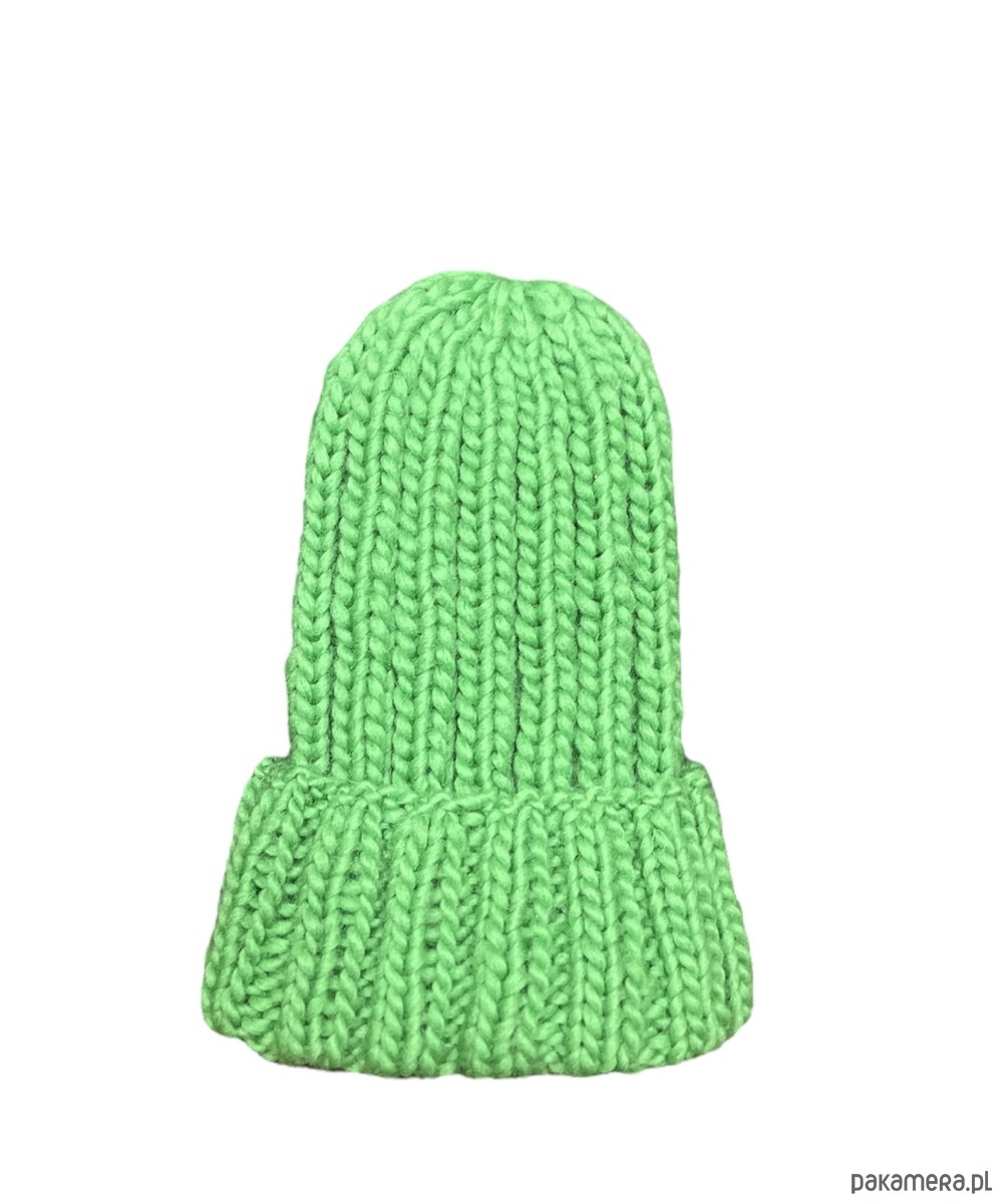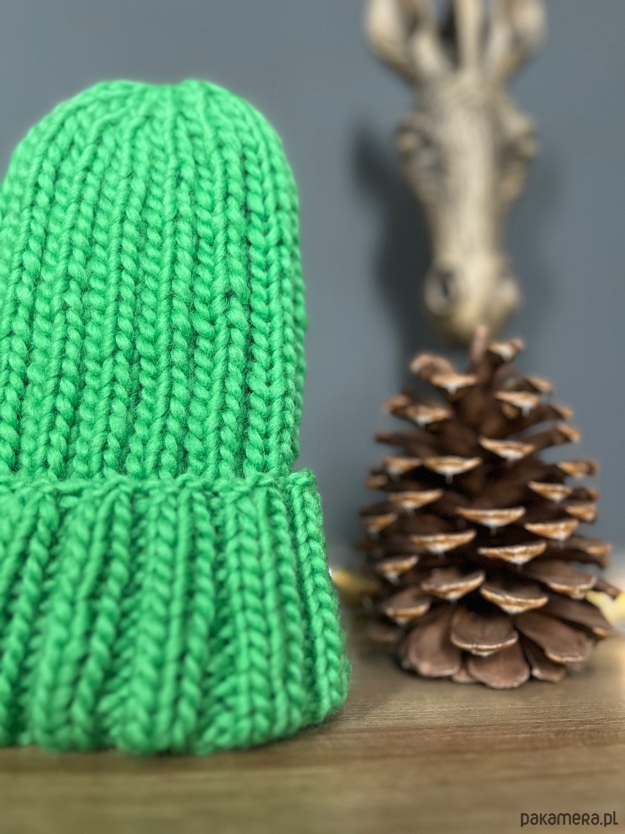 Czapka w kolorze zielonym, wykonana z naturalnej włóczki 100% wełna