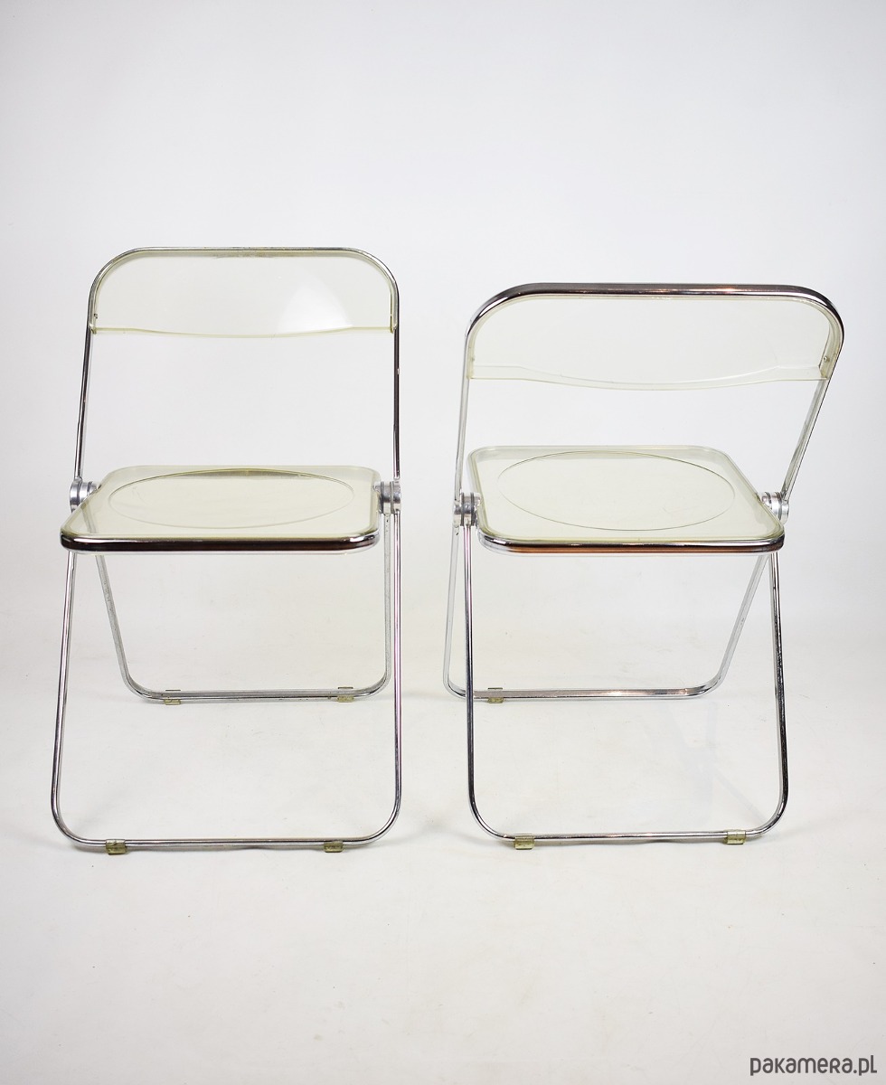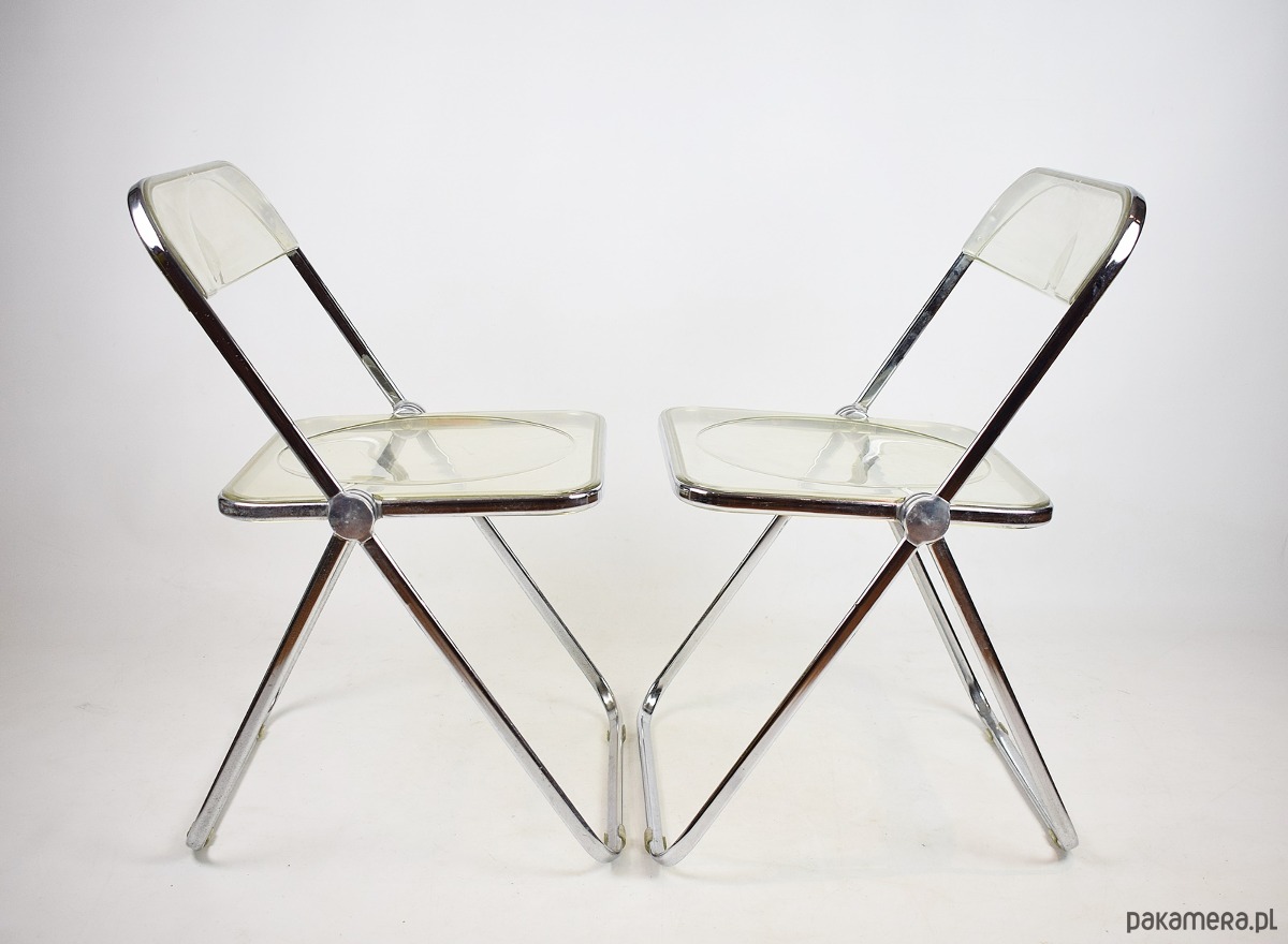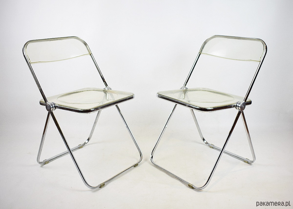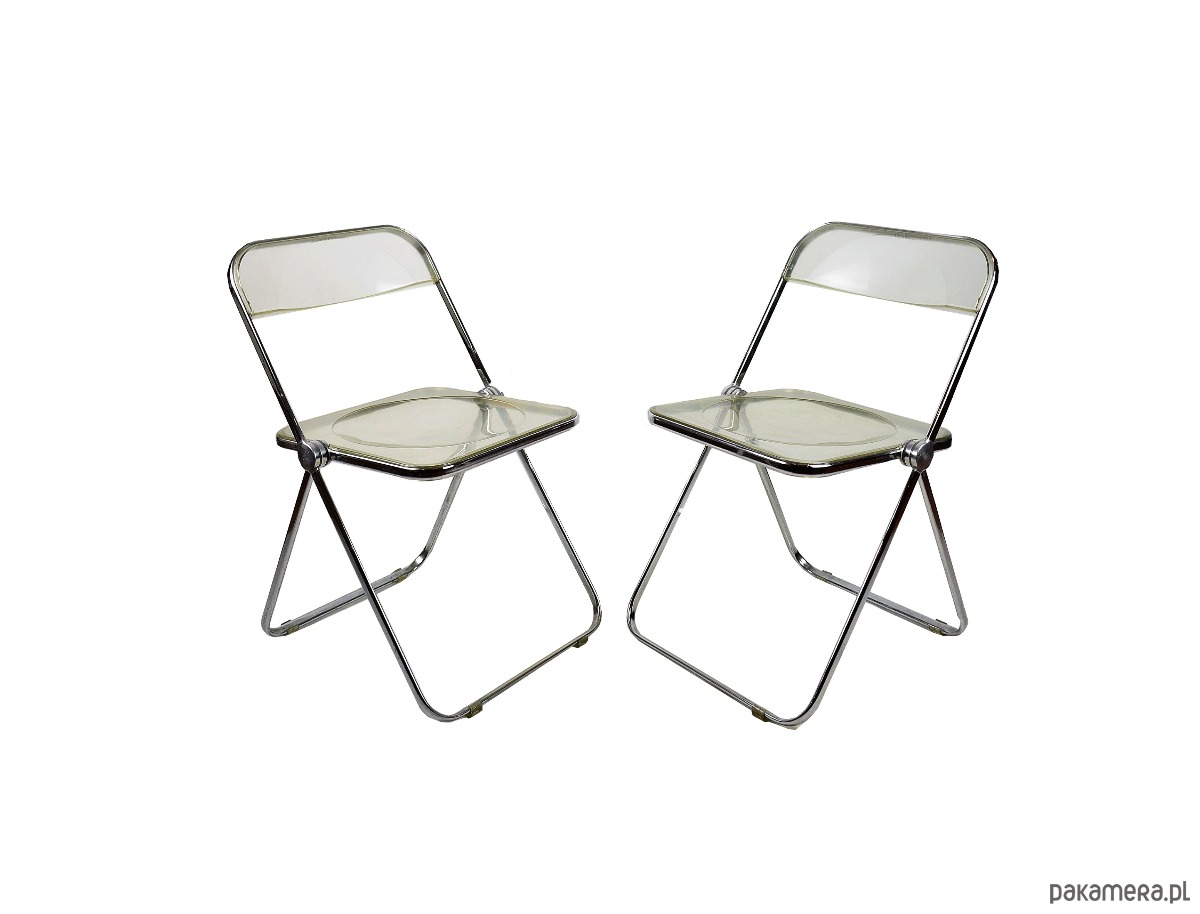 Para krzeseł Plia Anonima, Castelli, design Giancarlo Piretti lata 70.
