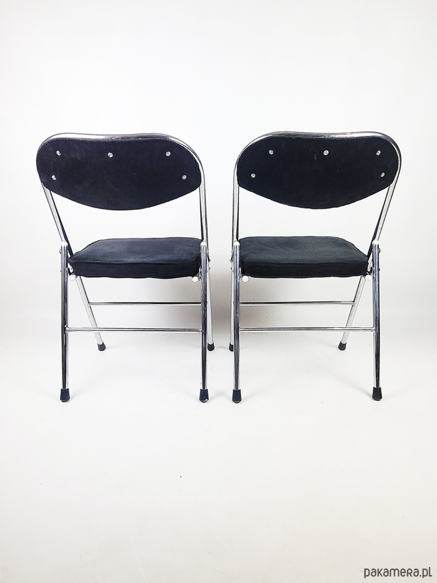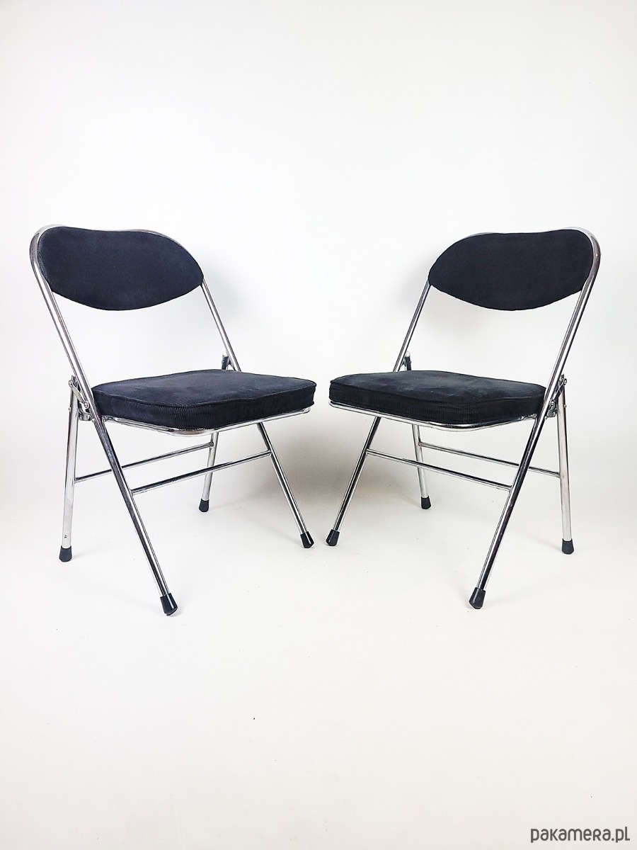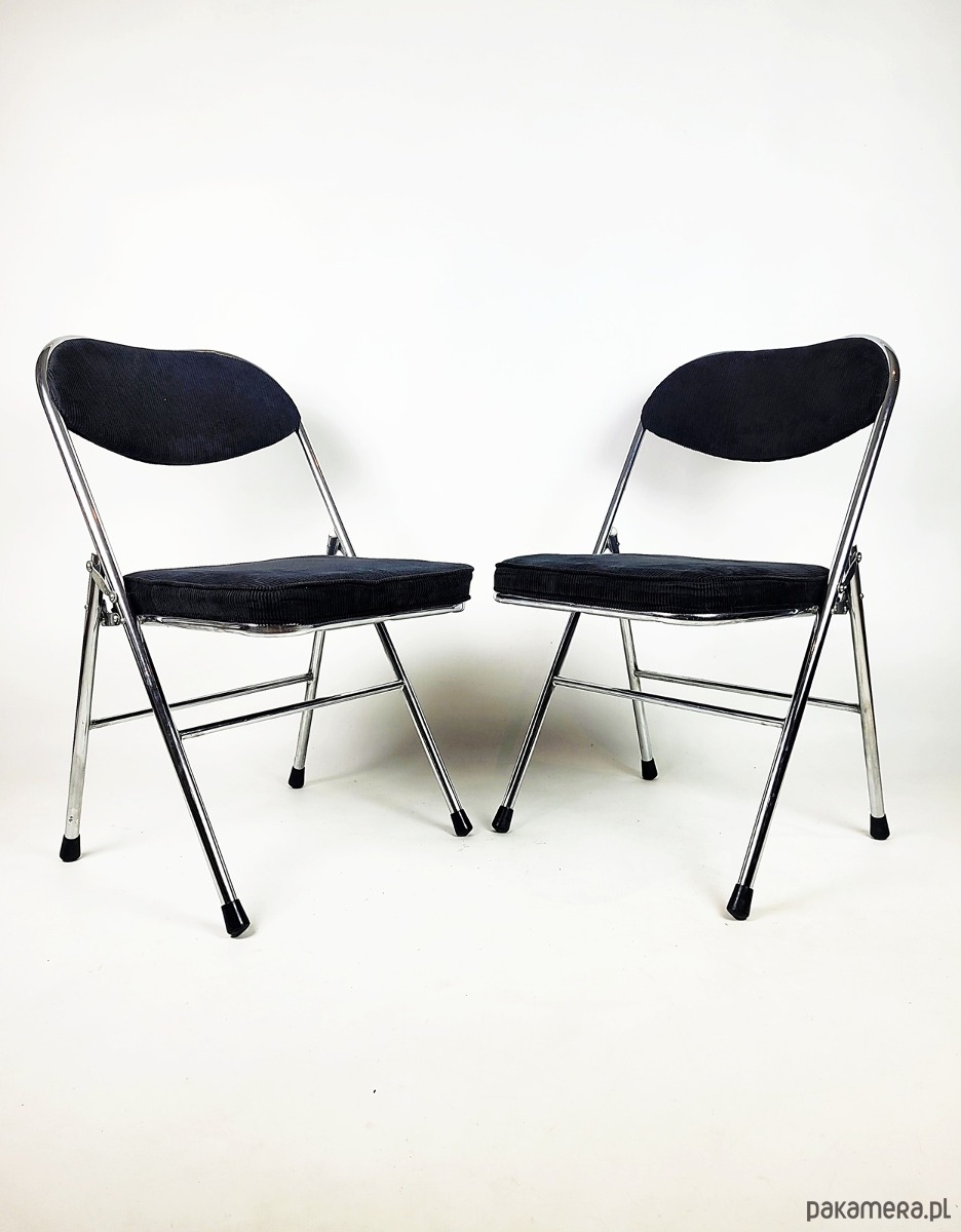 Ten wyjątkowy komplet składanych krzeseł to idealne połączenie elegancji, funkcjonalności i stylu vintage. Solidna chromowana konstrukcja nadaje im nowoczesny, a zarazem ponadczasowy charakter, zapewniając jednocześnie trwałość i stabilność. Miękka, czarna tapicerka ze sztruksu dodaje krzesłom wyrafinowanego uroku, oferując wygodę i przyjemną w dotyku fakturę. Dzięki składanej konstrukcji są niezwykle praktyczne – łatwe do przechowywania i idealne zarówno do codziennego użytku, jak i na specjalne okazje. Doskonale sprawdzą się w nowoczesnych i industrialnych wnętrzach, a także w aranżacjach inspirowanych stylem retro. To wyjątkowy zestaw, który łączy w sobie komfort, estetykę i funkcjonalność.