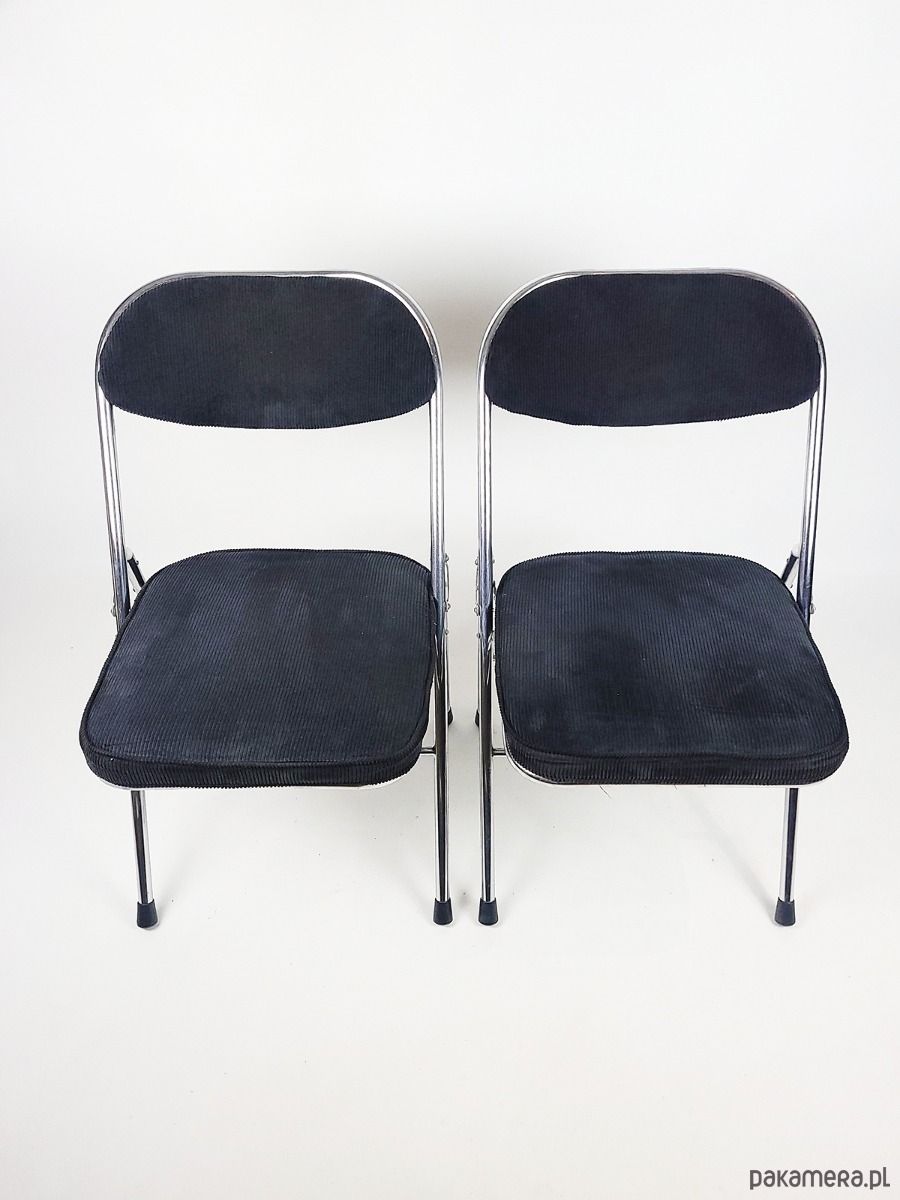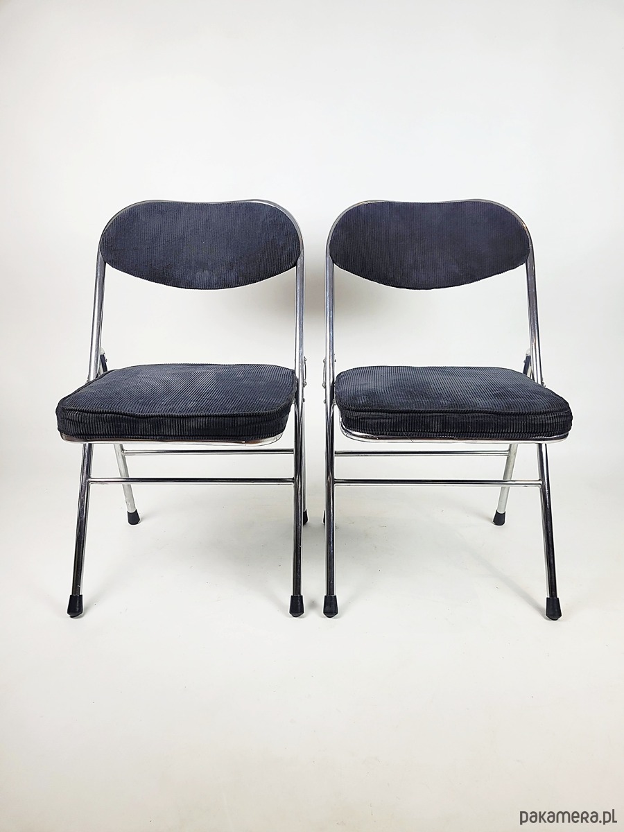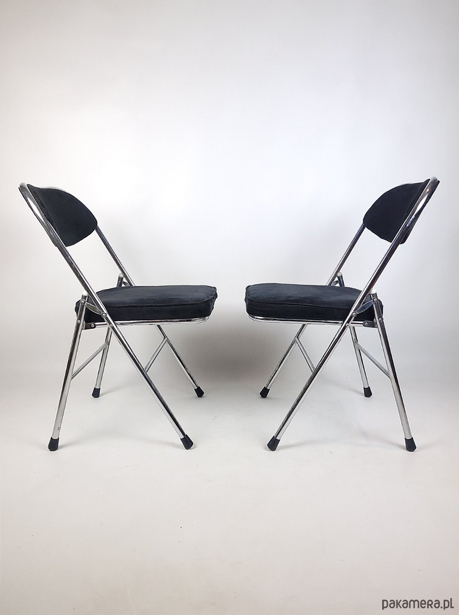 Ten wyjątkowy komplet składanych krzeseł to idealne połączenie elegancji, funkcjonalności i stylu vintage. Solidna chromowana konstrukcja nadaje im nowoczesny, a zarazem ponadczasowy charakter, zapewniając jednocześnie trwałość i stabilność. Miękka, czarna tapicerka ze sztruksu dodaje krzesłom wyrafinowanego uroku, oferując wygodę i przyjemną w dotyku fakturę. Dzięki składanej konstrukcji są niezwykle praktyczne – łatwe do przechowywania i idealne zarówno do codziennego użytku, jak i na specjalne okazje. Doskonale sprawdzą się w nowoczesnych i industrialnych wnętrzach, a także w aranżacjach inspirowanych stylem retro. To wyjątkowy zestaw, który łączy w sobie komfort, estetykę i funkcjonalność.