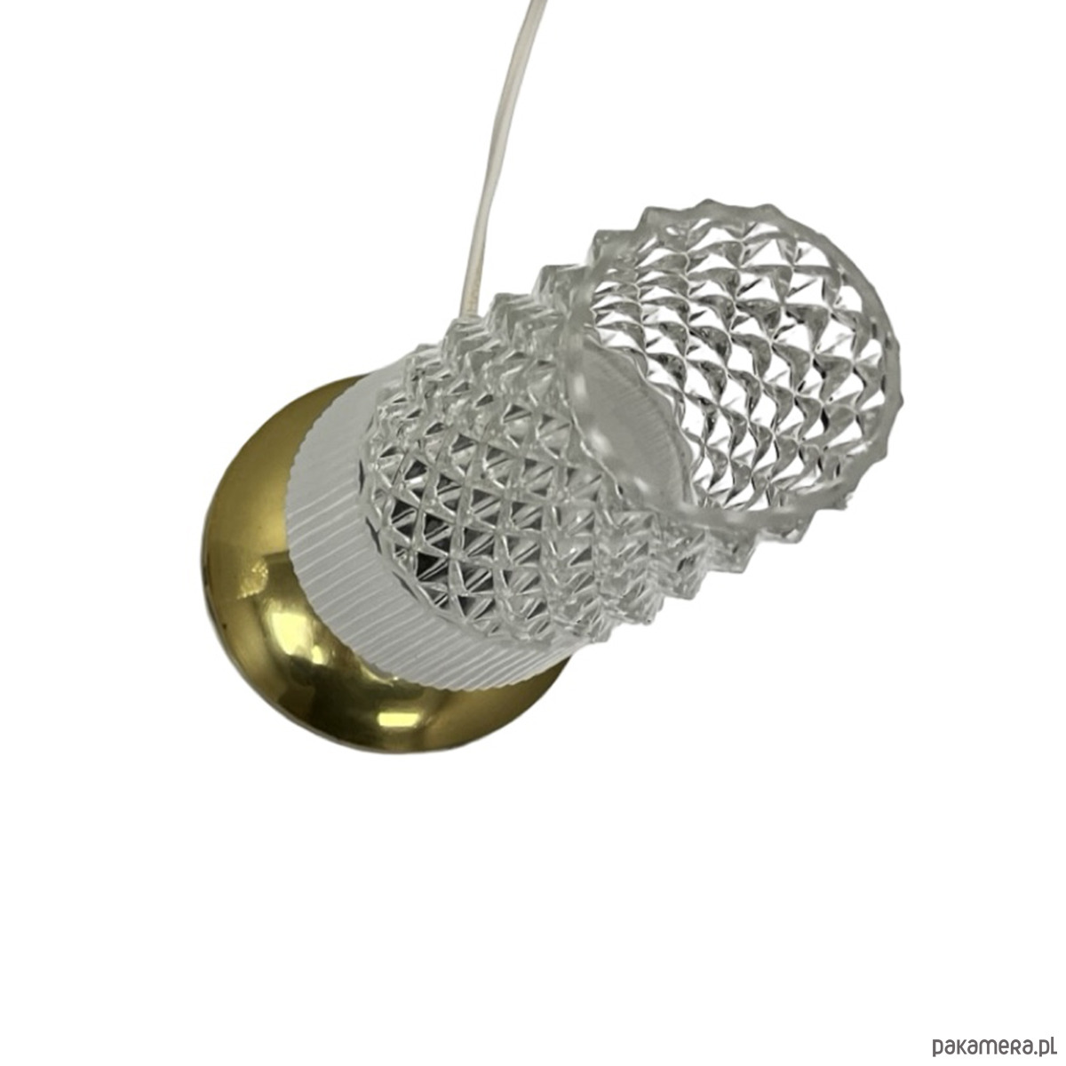 podstawa: metalowa w kolorze złotym z klasycznym białym przełącznikiem.