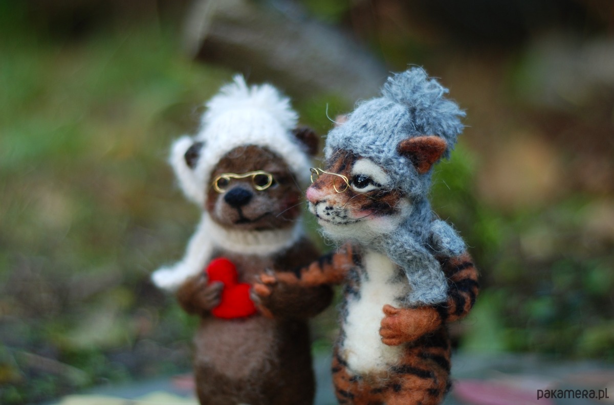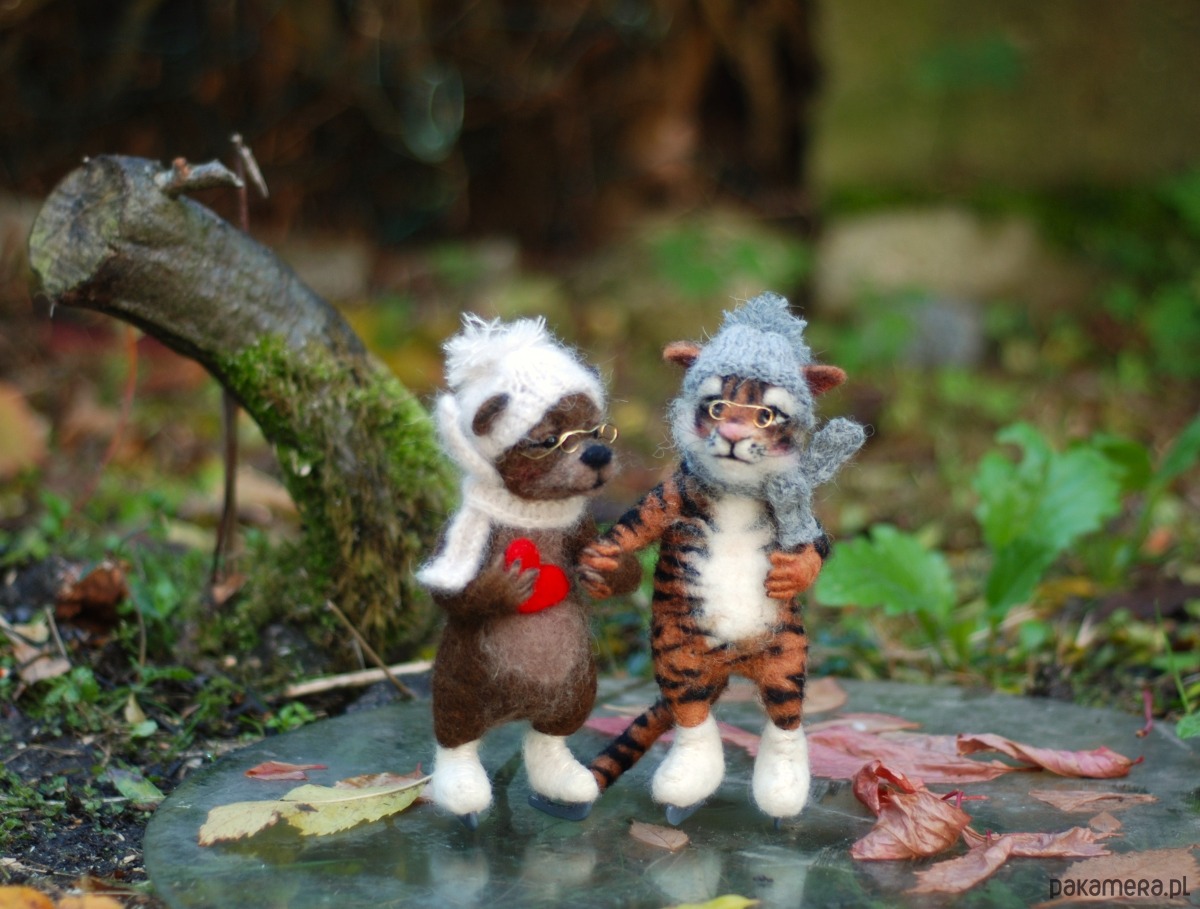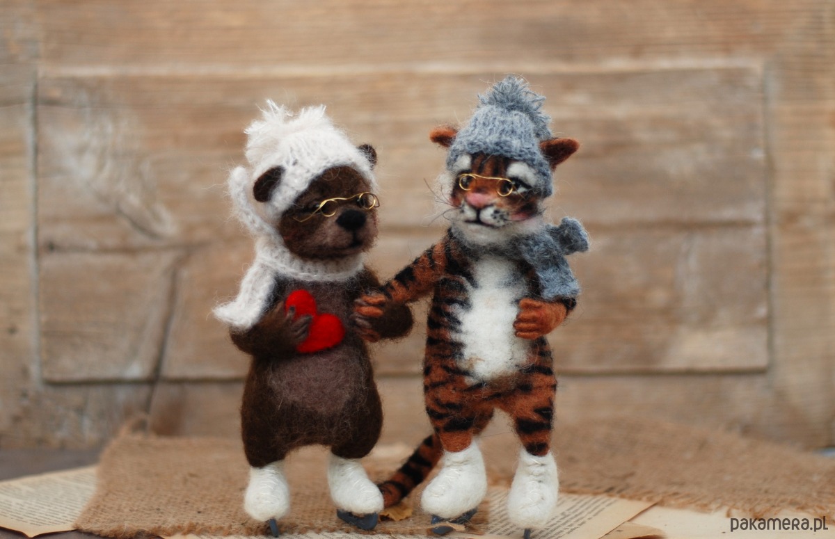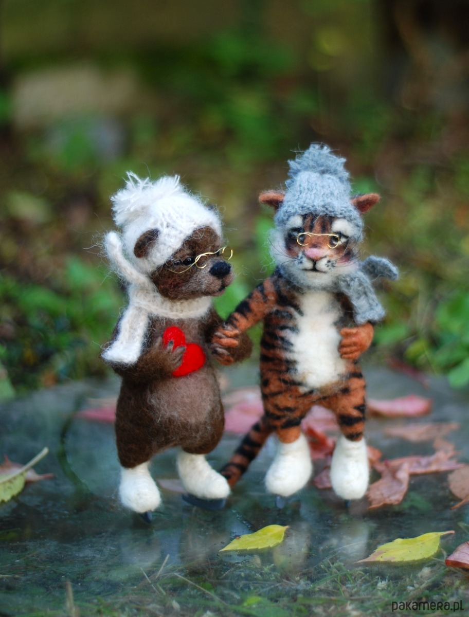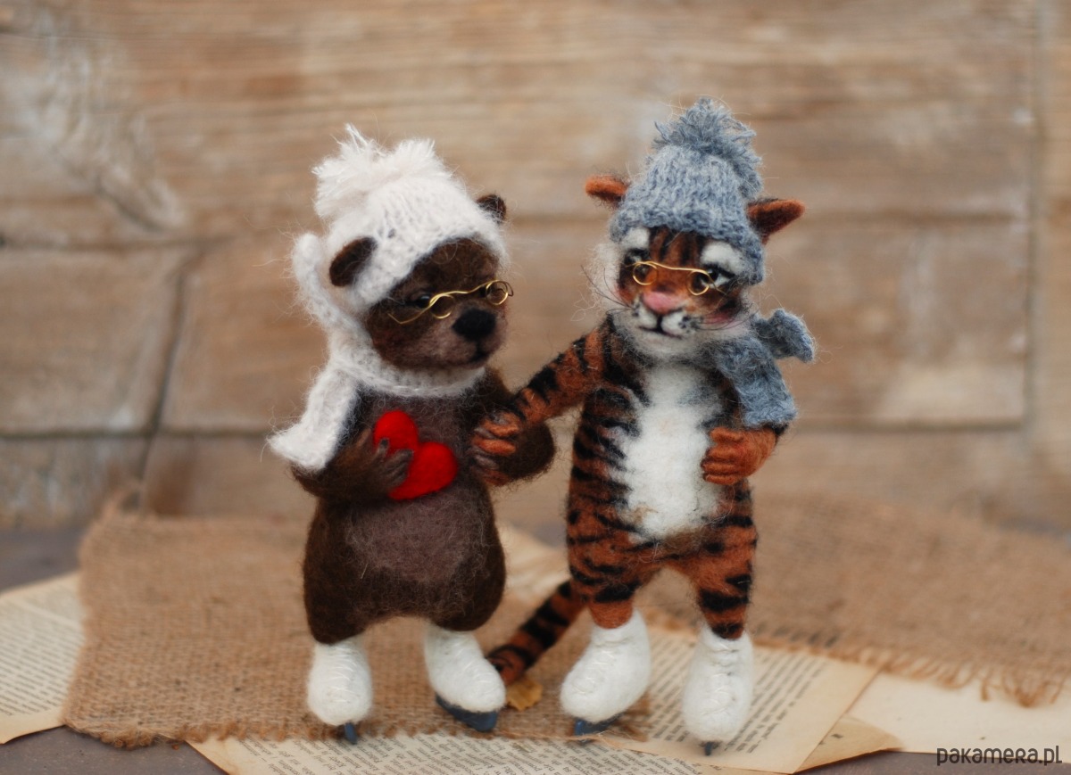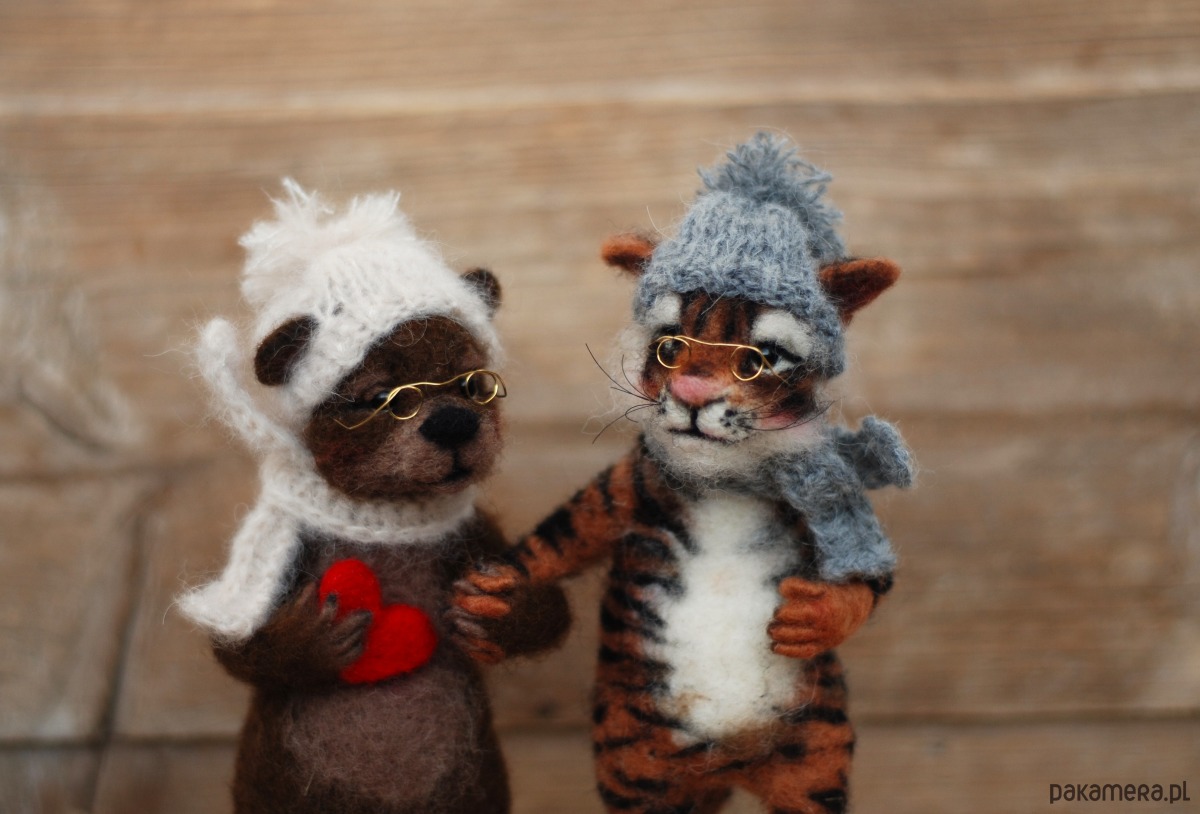 Pani Misia i Pan Tygrys, wykonane metodą filcowania na sucho z wełny merynos.