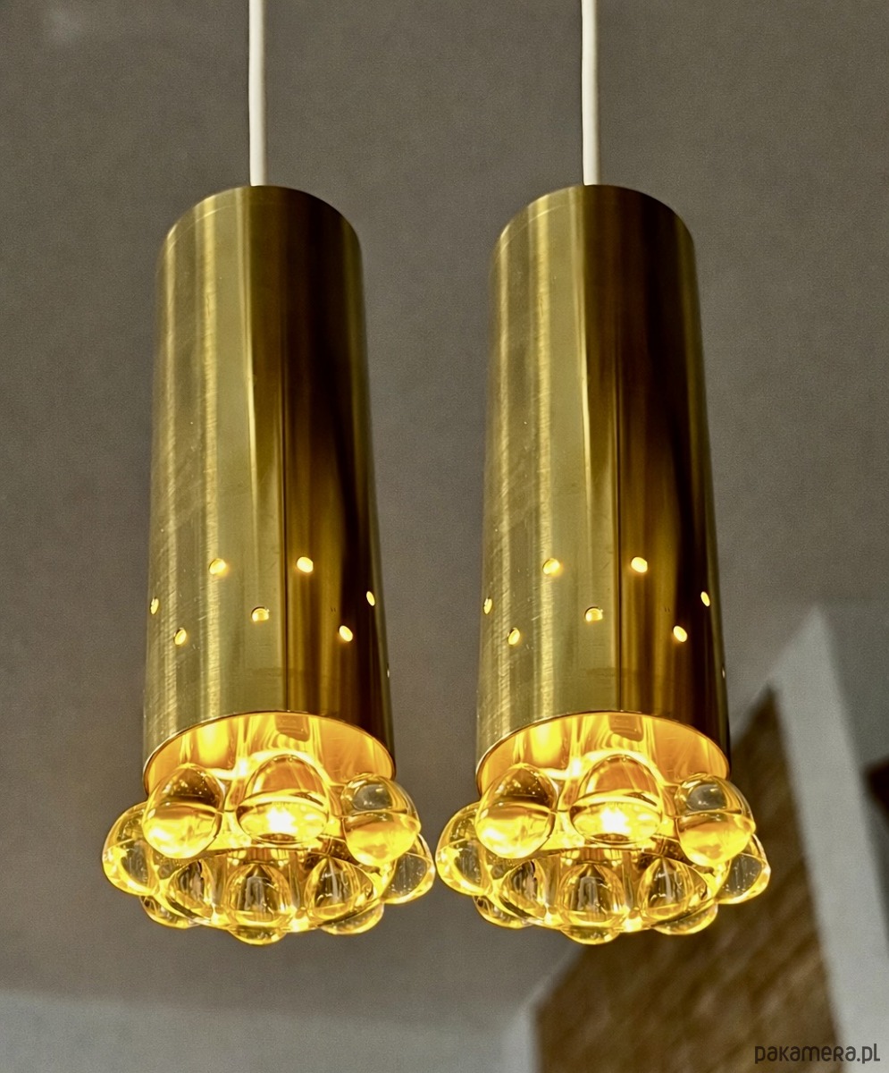 Para lamp wiszących mid-century modern, mosiądz + szkło, lata 60/70