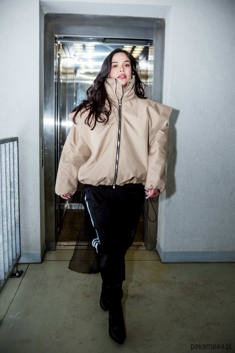 Nasza Paula ma 175cm i na co dzień nosi rozmiar 34/36 (model kurtki pasuje na każdą sylwetkę niezależnie od rozmiaru jaki nosisz)