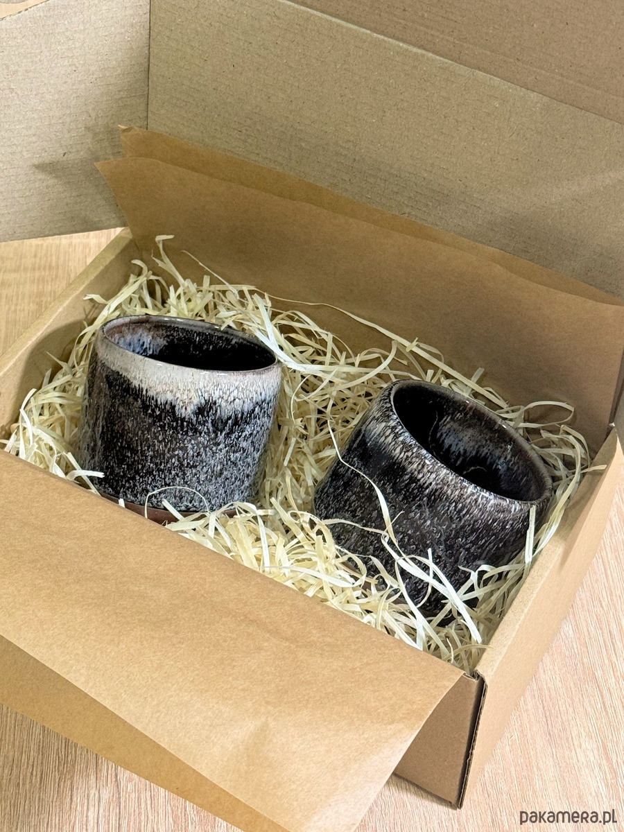 Zestaw dwóch czarek w opakowaniu prezentowym.
