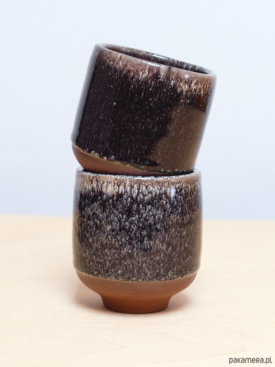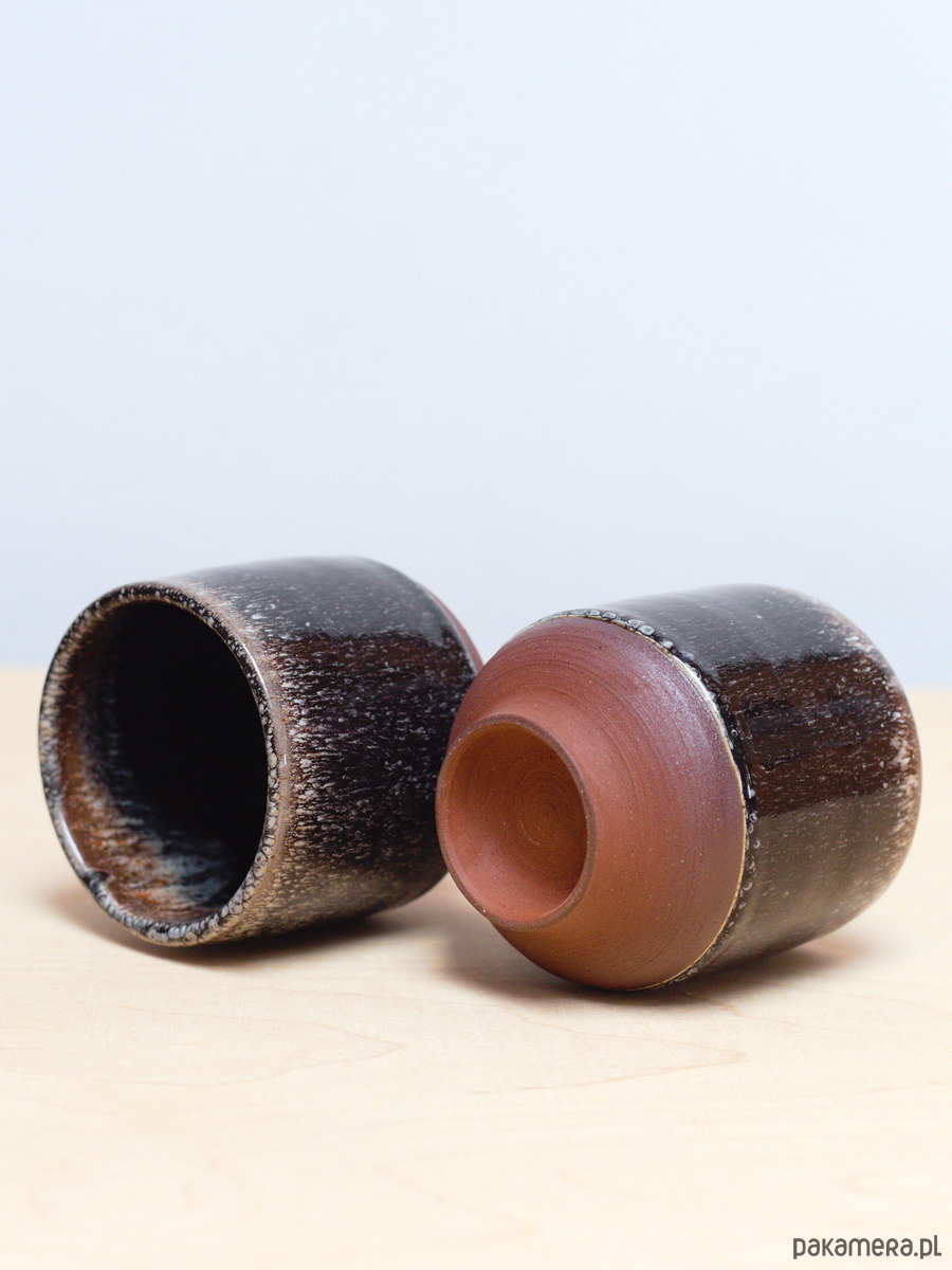 Czarki są szkliwiona na kolor Błędny Ognik - w pełni czarna powierzchnia z jasnymi plamkami o różnej gęstości. Powierzchnia szkliwa ma błyszczące wykończenie. Odsłonięta glina jest ciemno ruda.